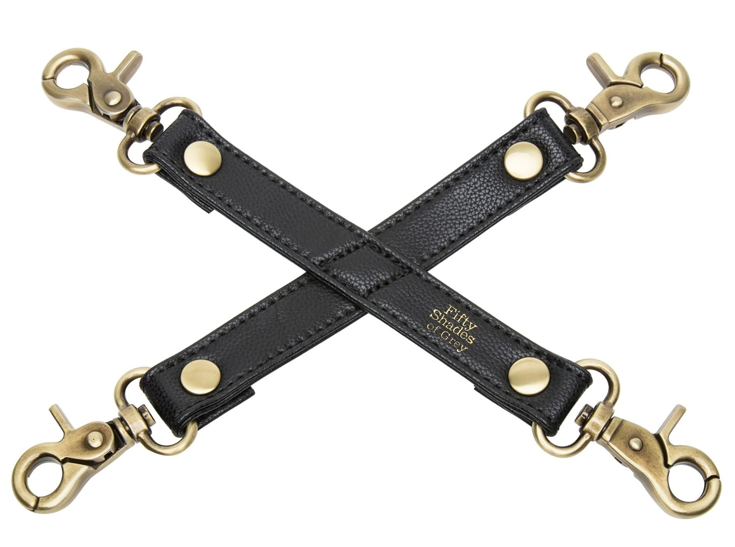 Engancha las esposas (o lo que más te guste) a los cuatro mosquetones del bilincskereszt y ajusta la posición que prefieras. Los mosquetones giran 360 grados, así tienes más libertad de movimiento durante tus juegos más sensuales.