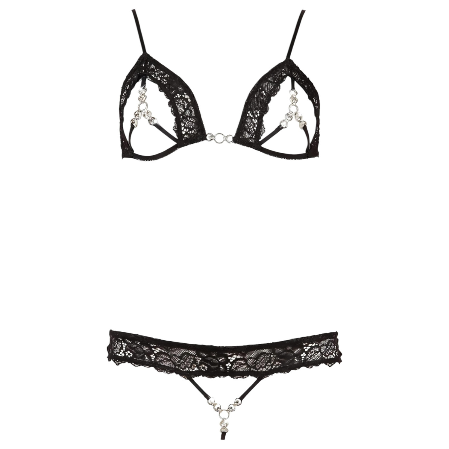 Seductoramente audaz y elegante set de encaje con brillantes resplandecientes - ¡el set de sujetador seducción extravagante de Abierta Fina hará que tu apariencia sea inolvidable!
