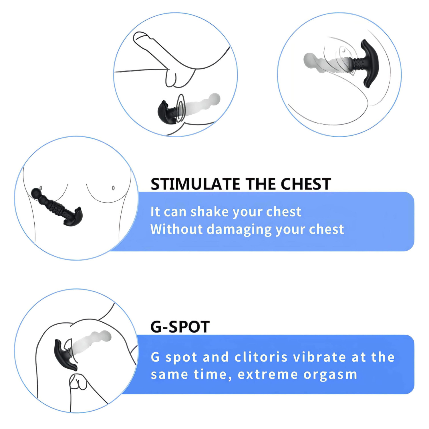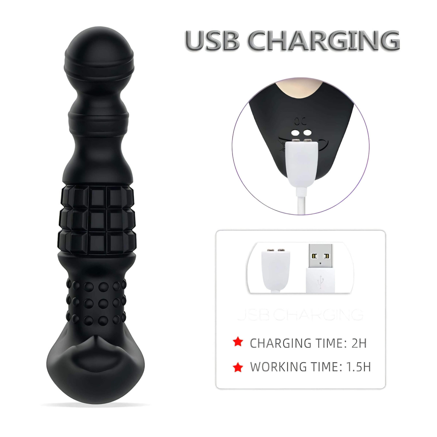 Estructura sólida, hecho de silicona suave y agradable para la piel, con forma anatómicamente ideal, especialmente diseñada para hombres, con curvatura para estimular la próstata de forma fácil e intensa.