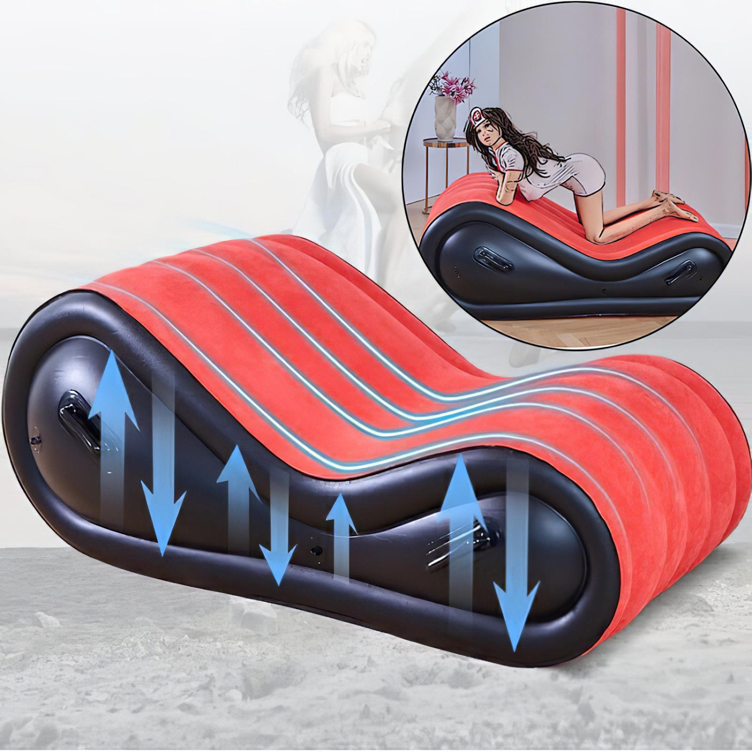 ¡Anima tus experiencias en la cama con este mueble sexual inflable de felpa! Pruébalo para posturas emocionantes y juegos cómodos o salvajes, ¡la diversión está garantizada!