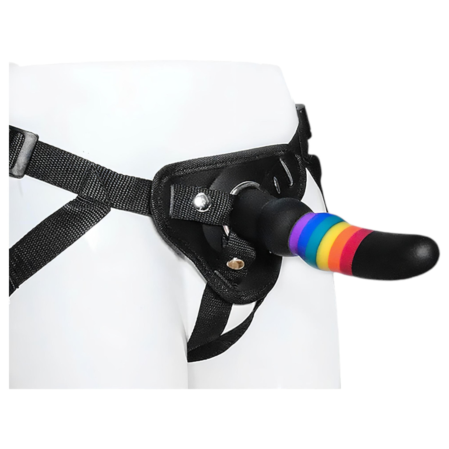 Arnés con dildo, en colores arcoíris y calidad premium holandesa!
