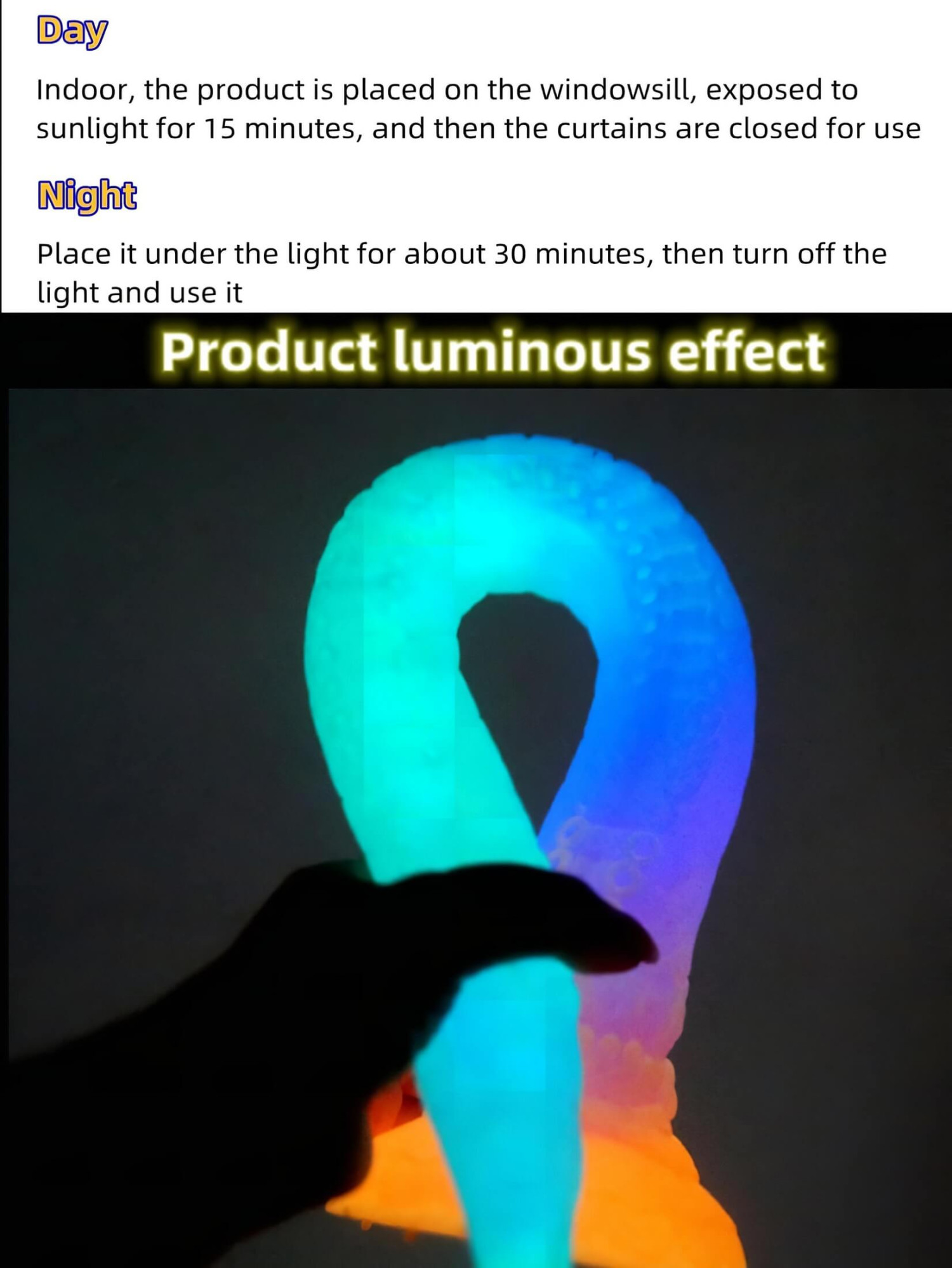 • Tecnología Glow-in-the-Dark - el cuerpo brillante también se puede cargar en la luz y brillar en la oscuridad