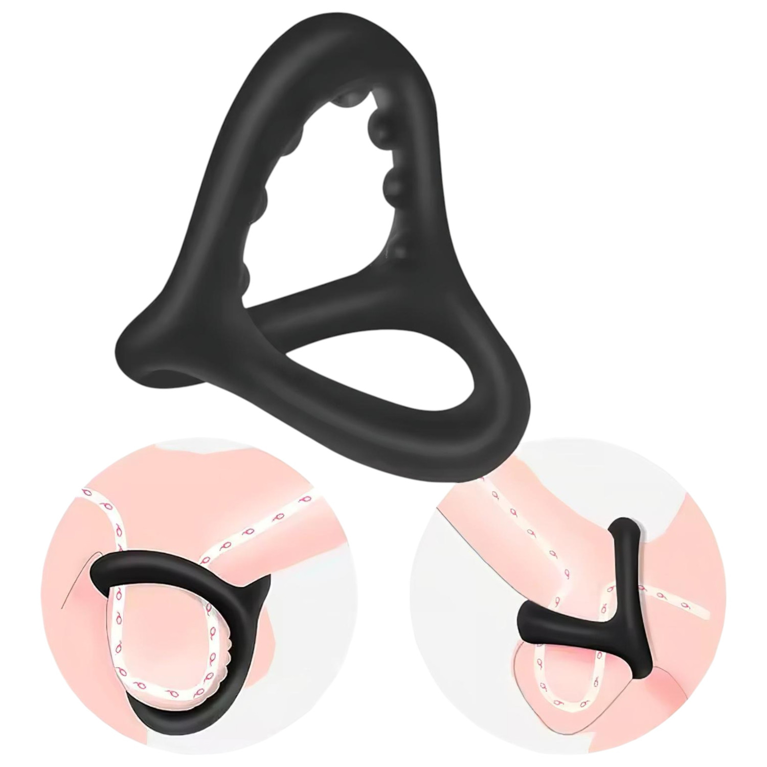 Este anillo de pene de silicona premium en forma de triángulo no solo fortalece y hace más duradera la erección, sino que sus perlas internas estimulan intensamente las áreas en contacto con el glande, abriendo una nueva dimensión en el placer con cada uso.