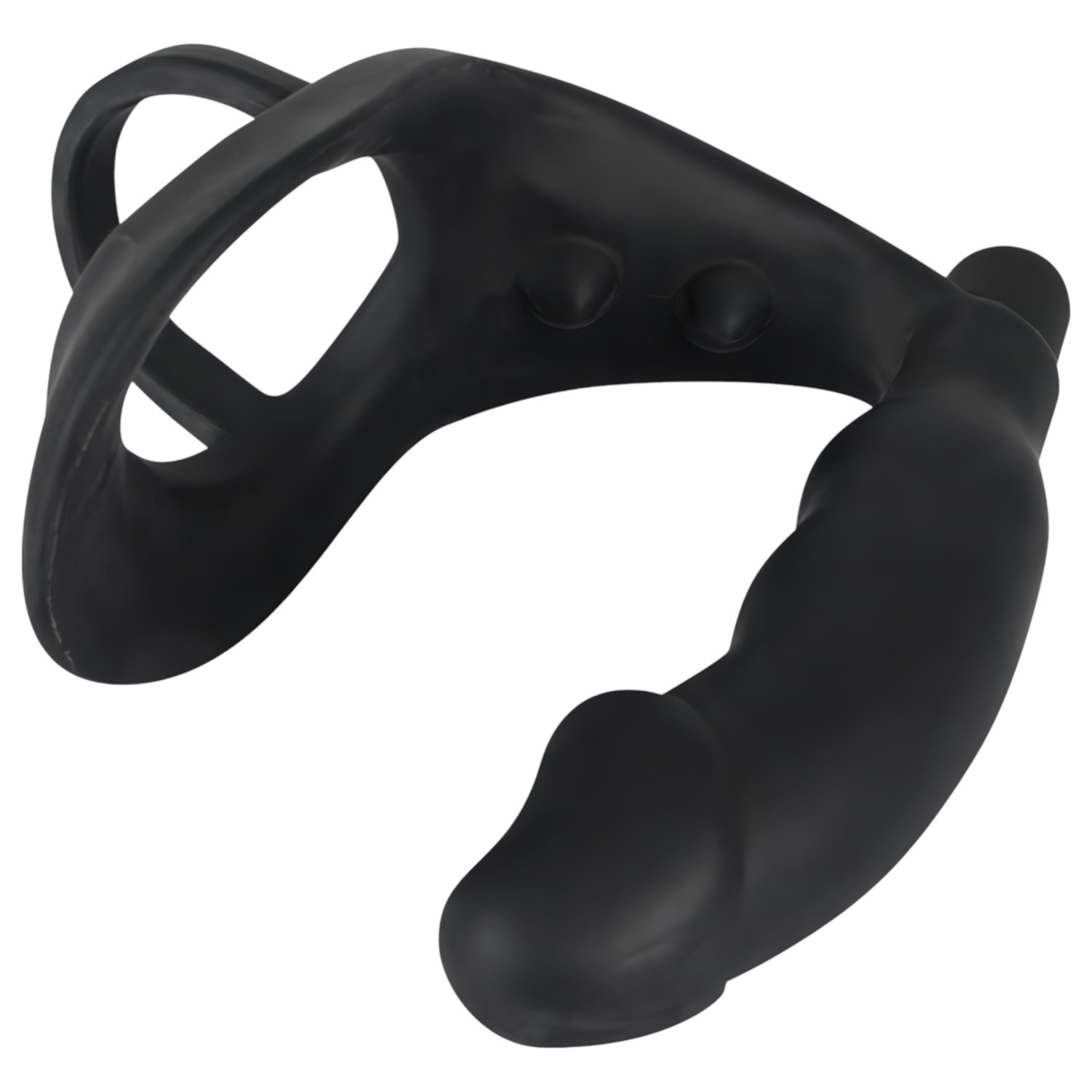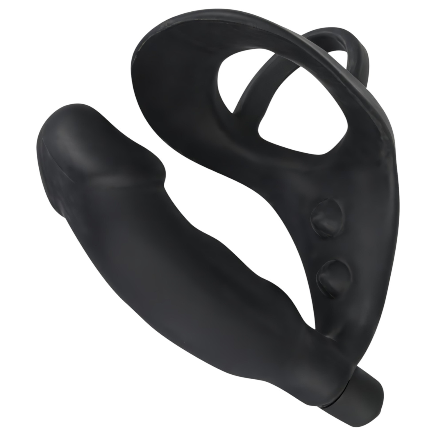 Black Velvet - vibrador anal con anillo pene y testículos (negro)