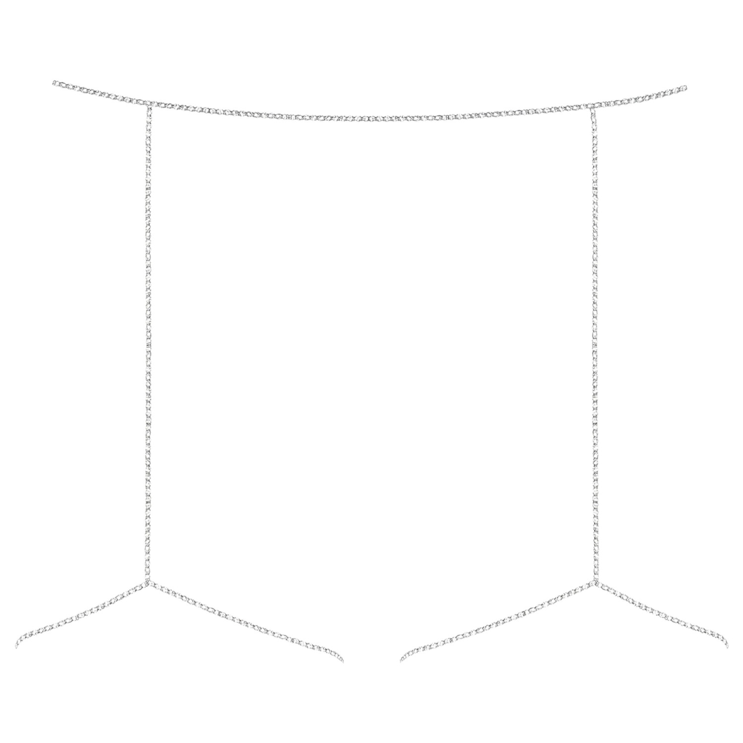 Cadena de cadera hecha de aleación de zinc y plata, con tiras para los muslos. ¡Decorada con brillantes piedras blancas!