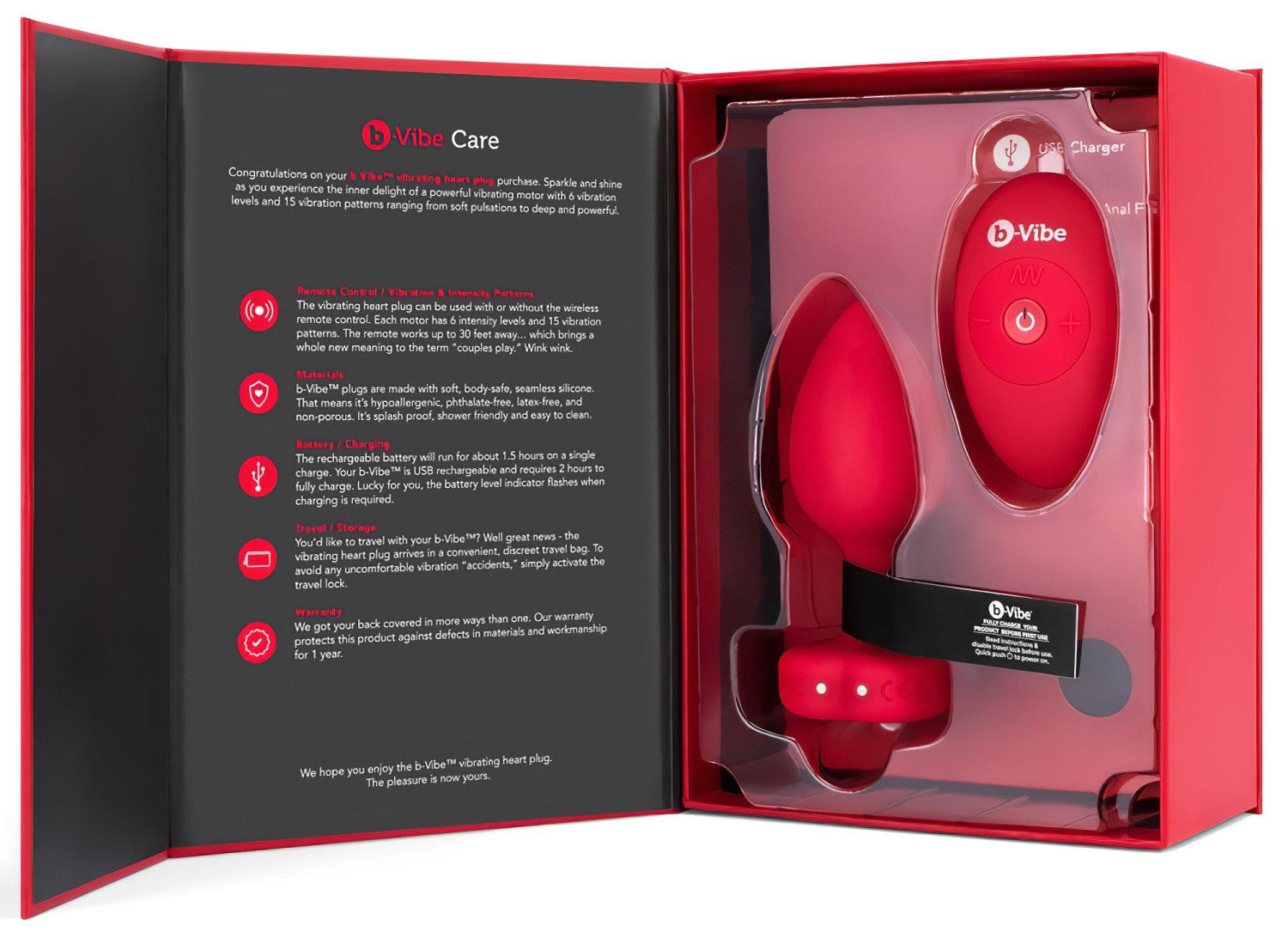 b-vibe heart - vibrador anal recargable con control remoto (rojo)