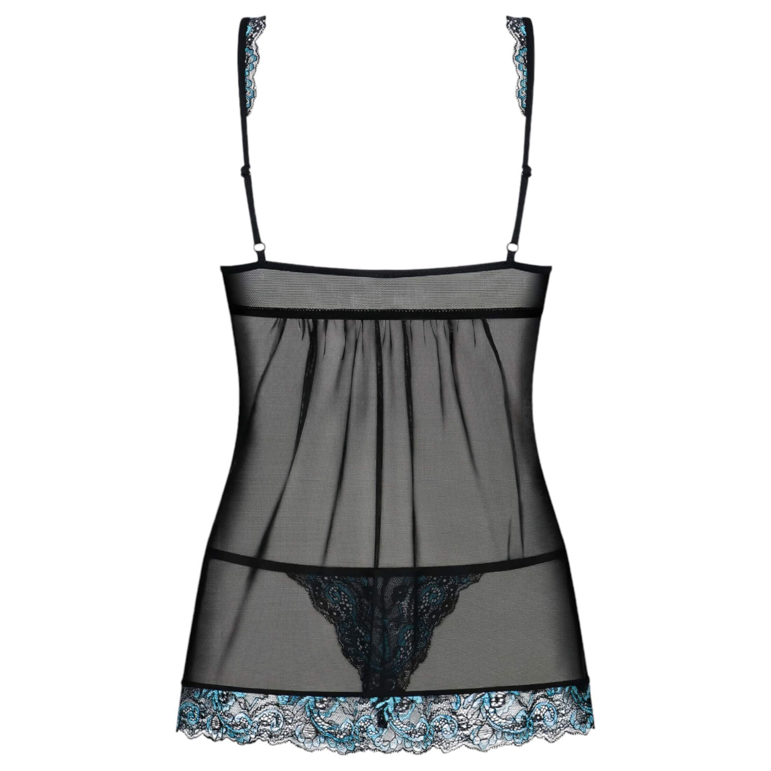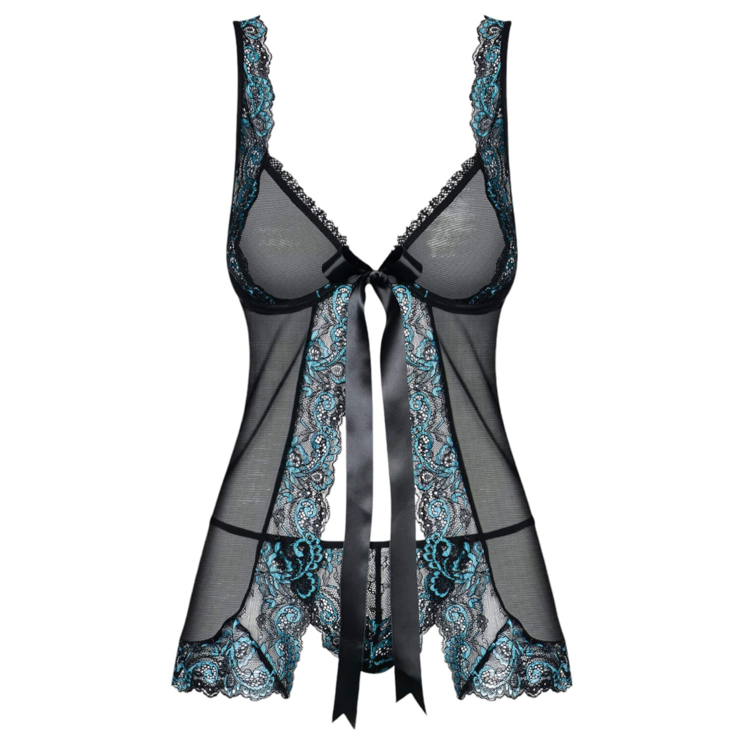 Sensual y elegante babydoll translúcido con bordados turquesa, perfecto para sorprender a tu pareja de forma misteriosa.¿Por qué te va a encantar?