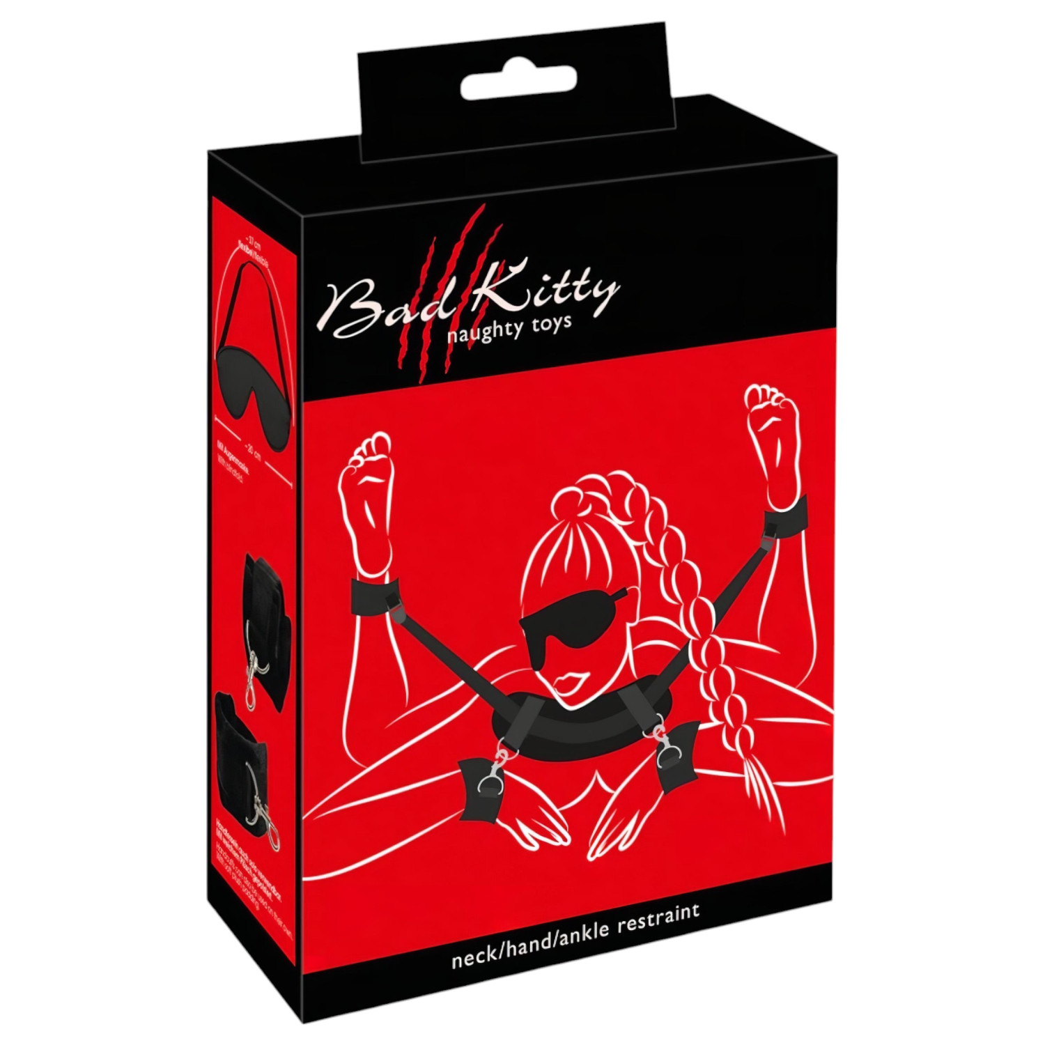 Bad Kitty - esposas negras para cuello, muñecas y tobillos