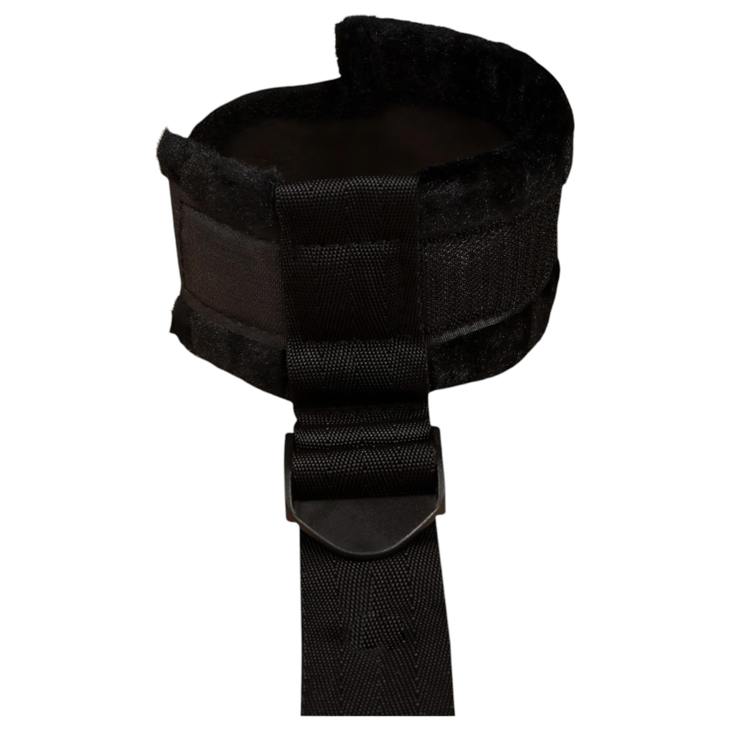 • Soporte de cuello acolchado, del que salen las correas para las esposas y para atar las piernas