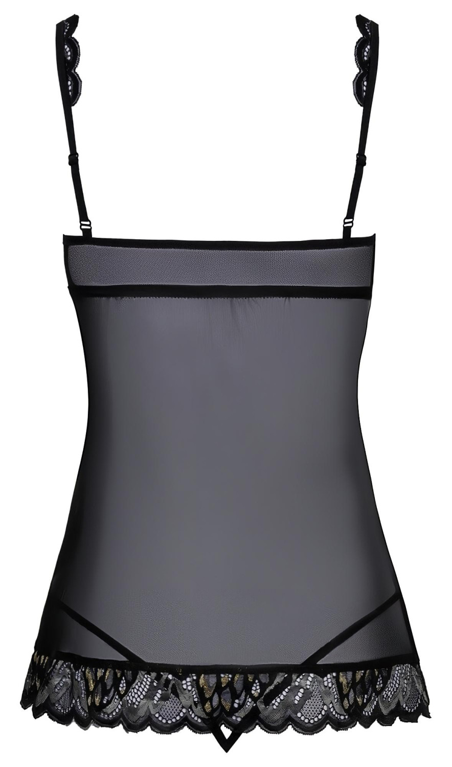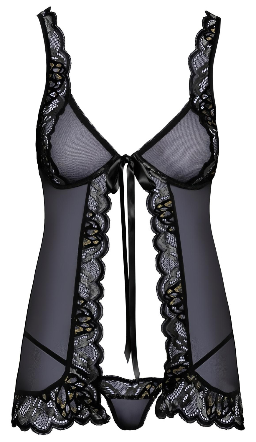 ¡Dale chispa a tus noches con este babydoll abierto por delante, decorado con bordados en dorado y plateado! Sensual, pero súper cómodo.
