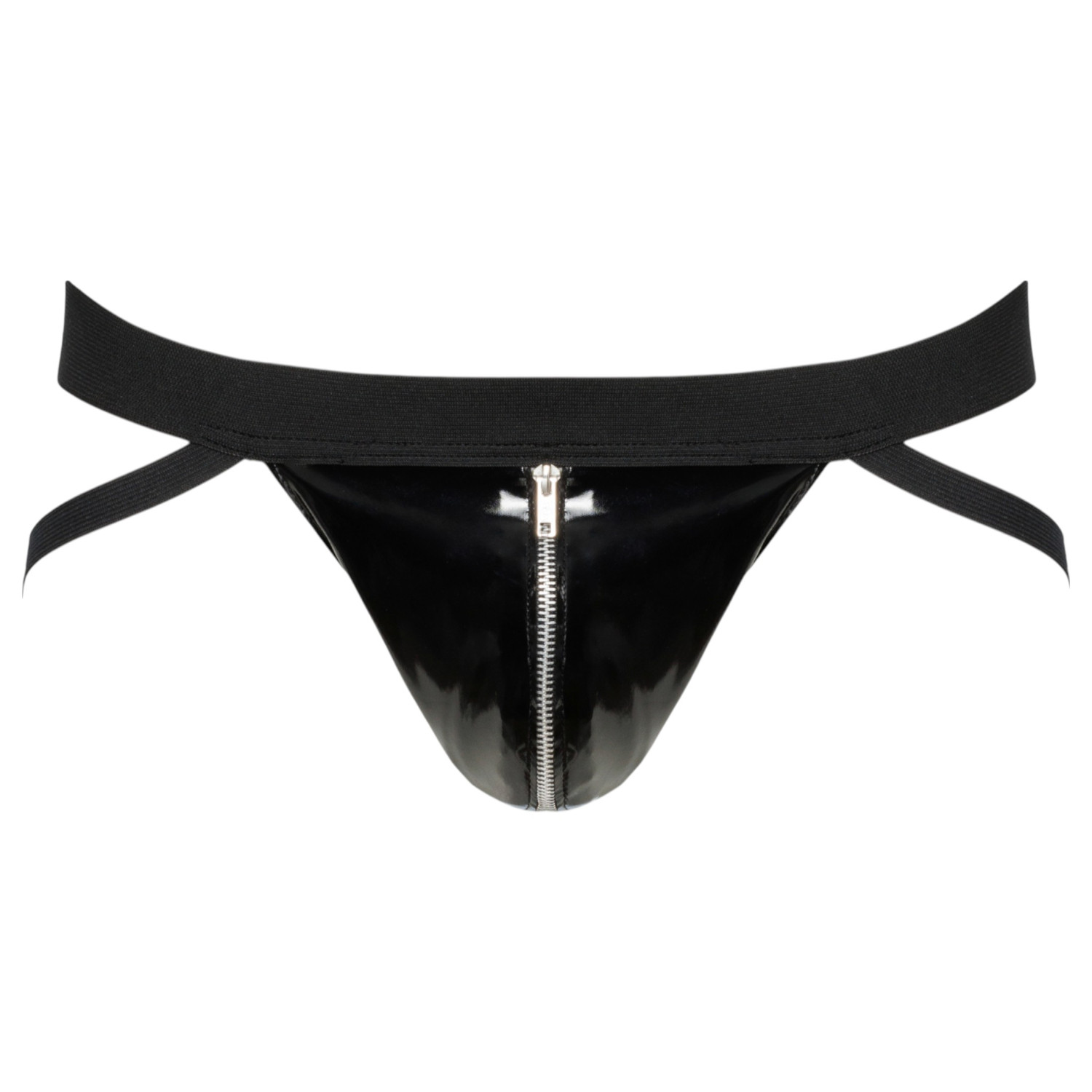 Aspecto brillante y provocativo con acceso rápido en un solo movimiento: ¡así es el suspensorio de vinilo con cremallera!