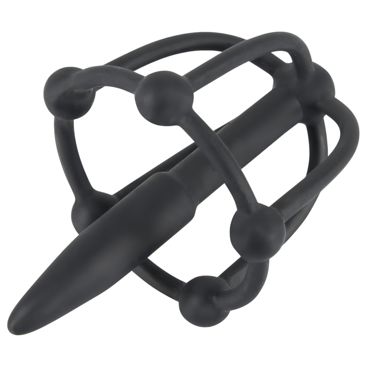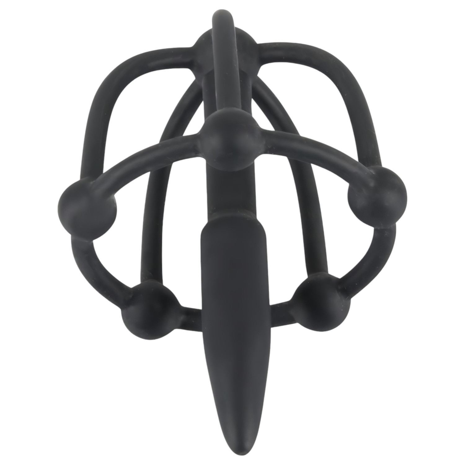 Aplica bastante lubricante al dilatador cónico y colócalo suavemente en la uretra. Pasa el anillo flexible por la base del glande, así la jaula con su diseño radial mantiene todo en su sitio. Las cinco esferas incorporadas proporcionan un masaje sensual durante el acto, algo que tu pareja también va a disfrutar.