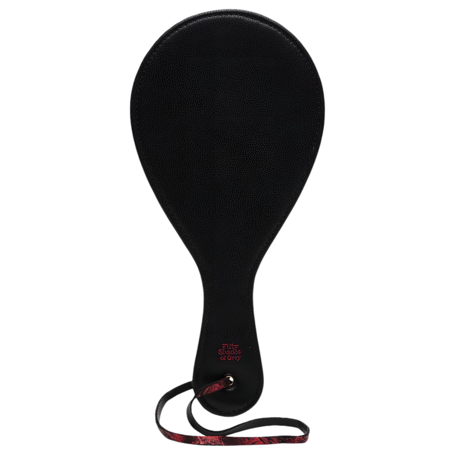 Pala con cabeza ancha, recubierta en cada lado con un material diferente: el lado de satén es suave y placentero, mientras que el lado de cuero es más intenso y pica un poco.