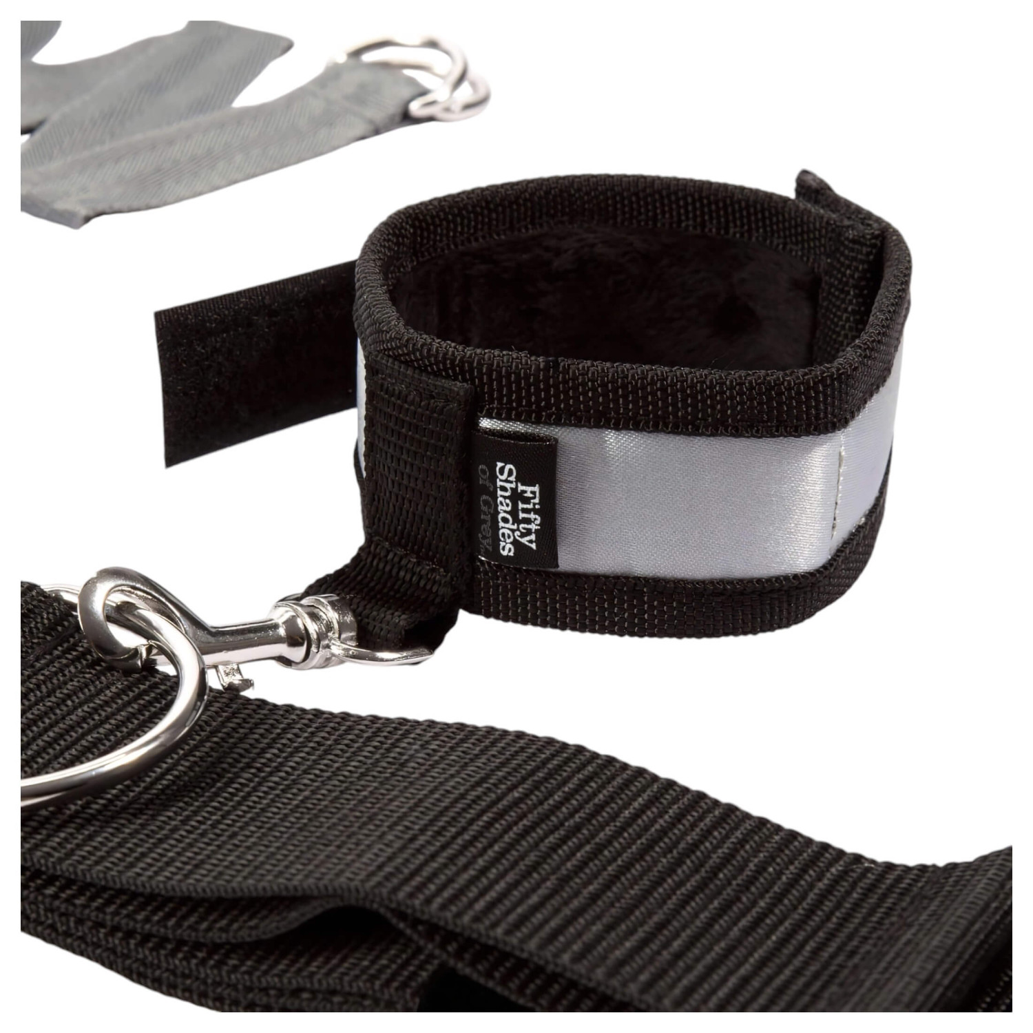 Pon la correa cruzada bajo la cama y engancha las correas grises largas en la posición que prefieras. Ajusta las esposas de muñeca y tobillo con el cierre de velcro a la medida que mejor os vaya y fíjalas con los mosquetones pequeños. Usa el antifaz para intensificar las sensaciones y disfruta de una experiencia totalmente diferente.