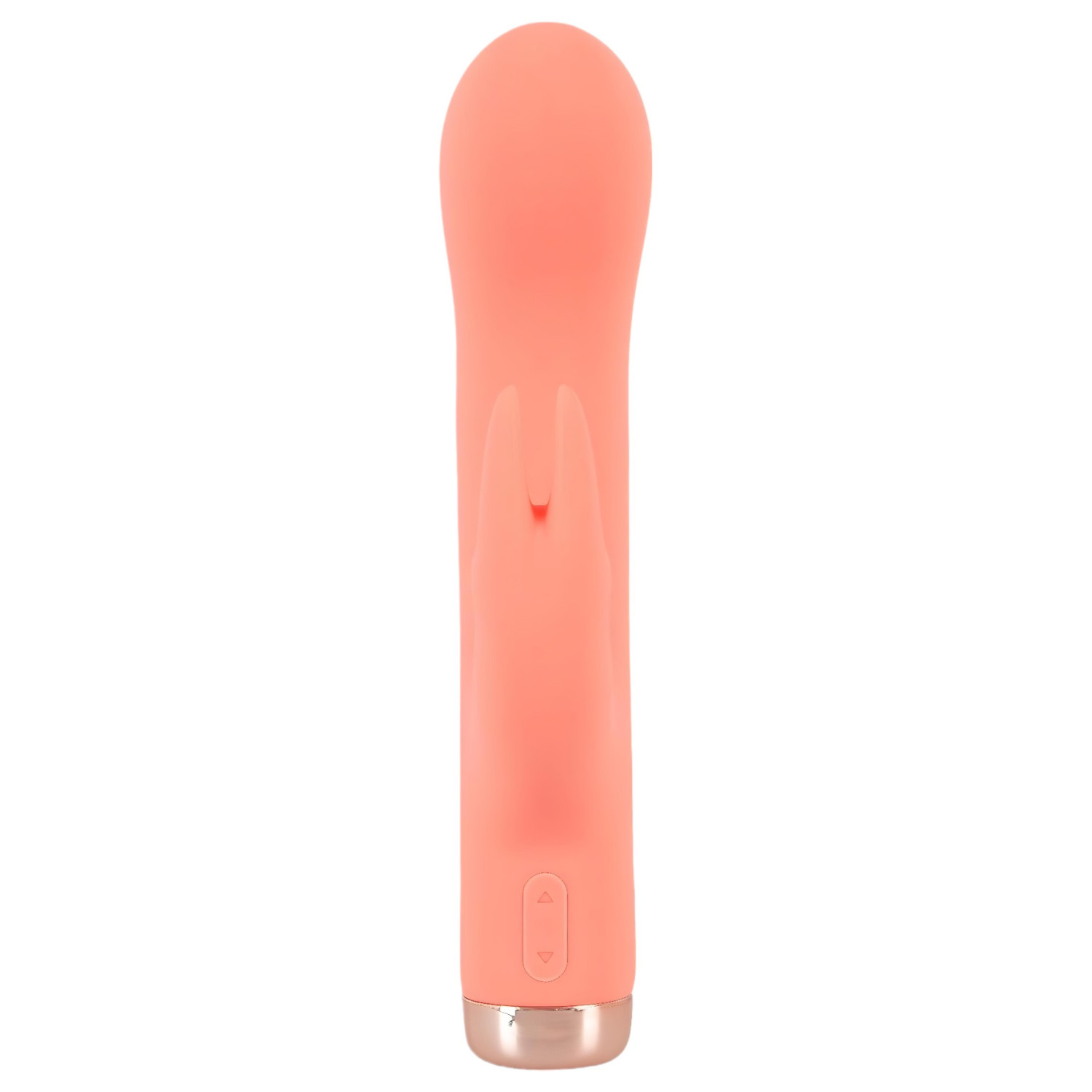 Vibrador de punto G con brazo para clítoris, tamaño compacto e ideal para principiantes, con una cabeza pronunciada para que encuentres tu punto de placer fácilmente, mientras las suaves orejitas de conejito estimulan tu clítoris.¿Por qué te va a encantar?
