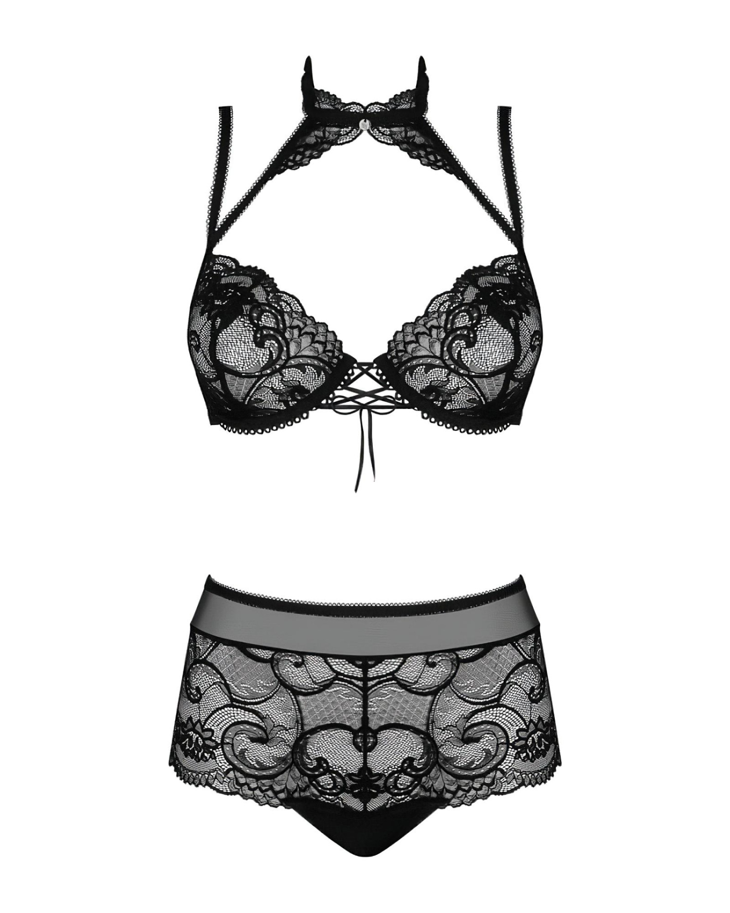 Obsessive Elizenes - conjunto de sujetador transparente y estampado (negro)