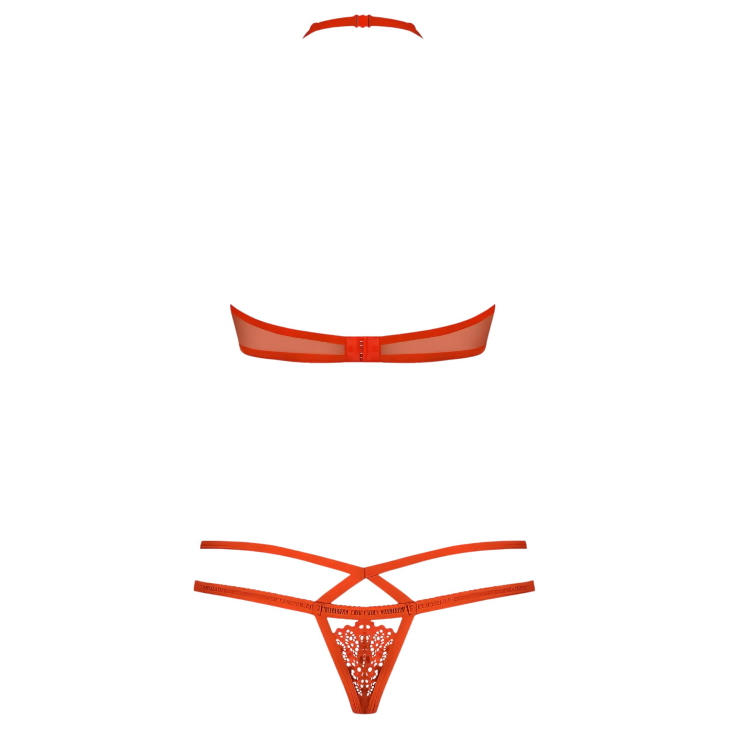 Obsessive 838-SET-3 - conjunto sujetador de encaje rojo con tiras - L/XL