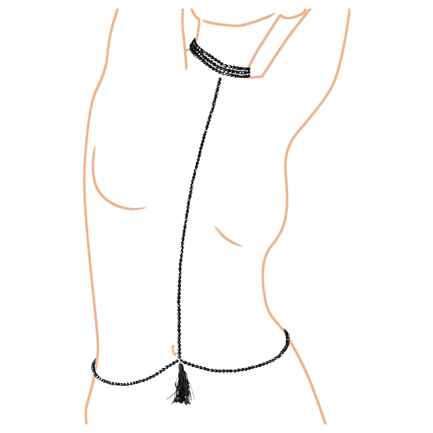 Cottelli - Arnes decorativo con perlas y collar (negro)