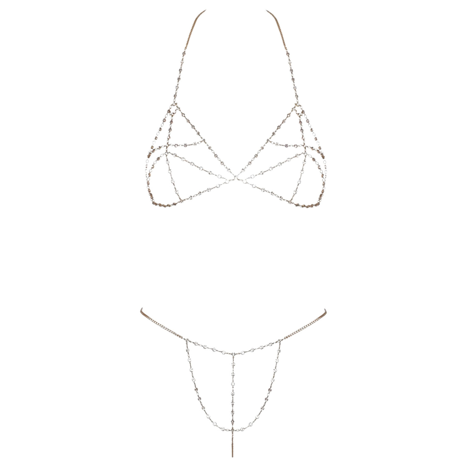 Pon la cadena del cuello alrededor de tu cuello y ajusta la talla ideal con los tres cierres de la parte de atrás. Coloca bien las cadenas brillantes siguiendo las curvas del pecho y las zonas íntimas para lograr la máxima comodidad y un efecto súper sexy. Puedes llevarlo solo como lencería, o combinarlo con bañadores o ropa ajustada para un toque aún más atrevido.