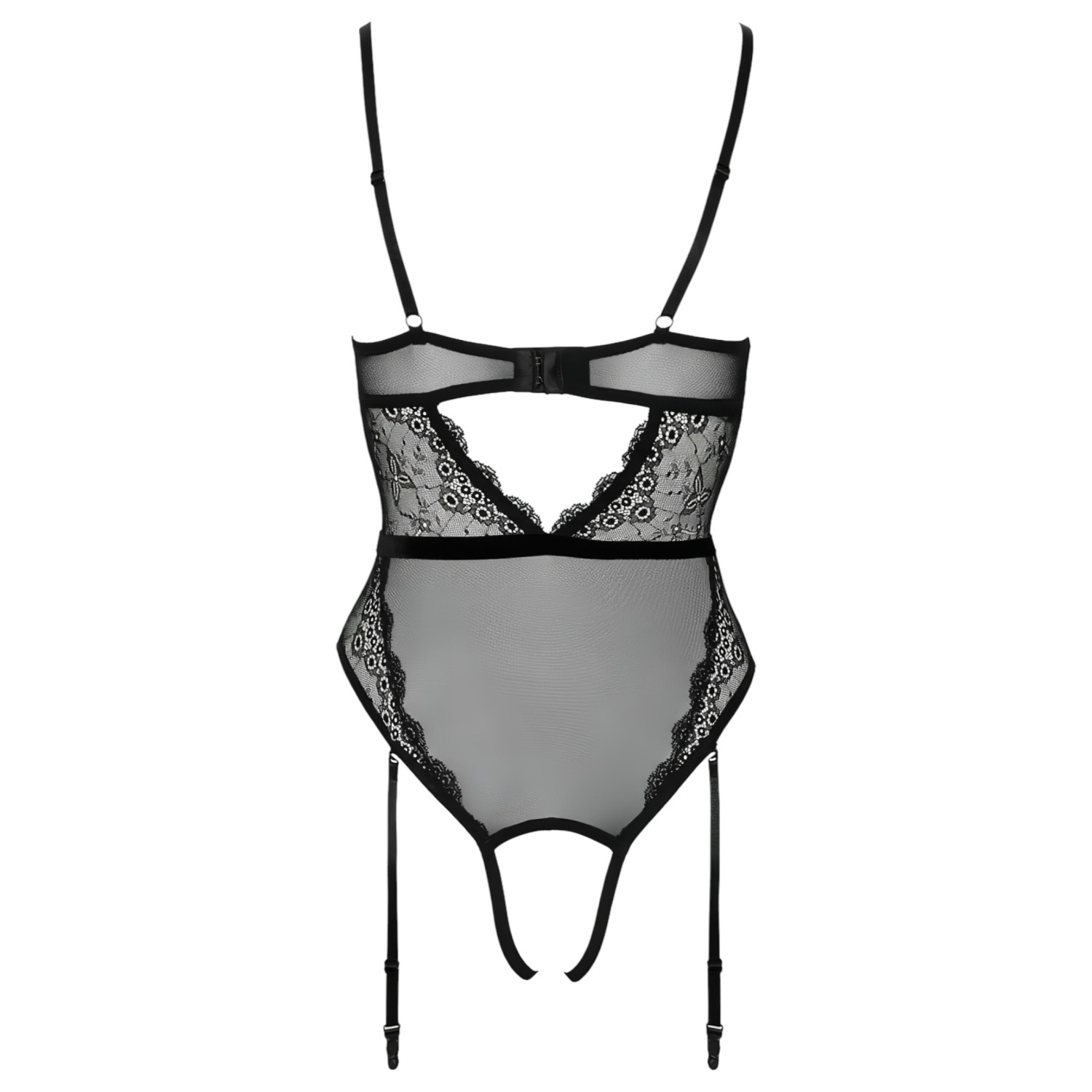 Body transparente de encaje, completamente abierto en la entrepierna, ideal para llevar incluso durante el sexo.