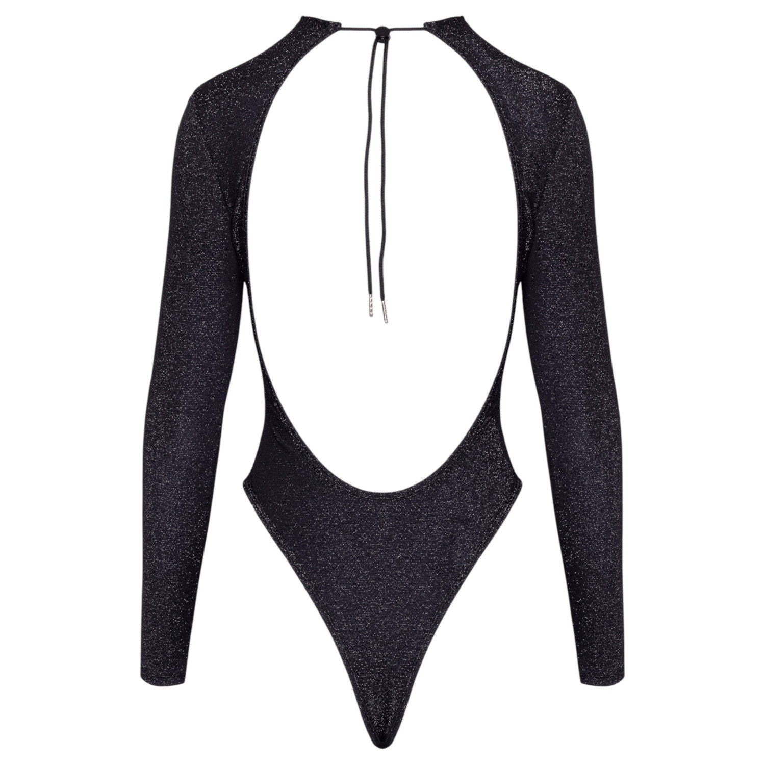 Este body especial no solo ofrece una apariencia deslumbrante para aventuras nocturnas, sino que su material brillante integrado, el atrevido corte casi totalmente sin espalda, y su material cómodo y flexible prometen que quien lo lleva se sentirá más seguro y conectado consigo mismo en un solo movimiento.