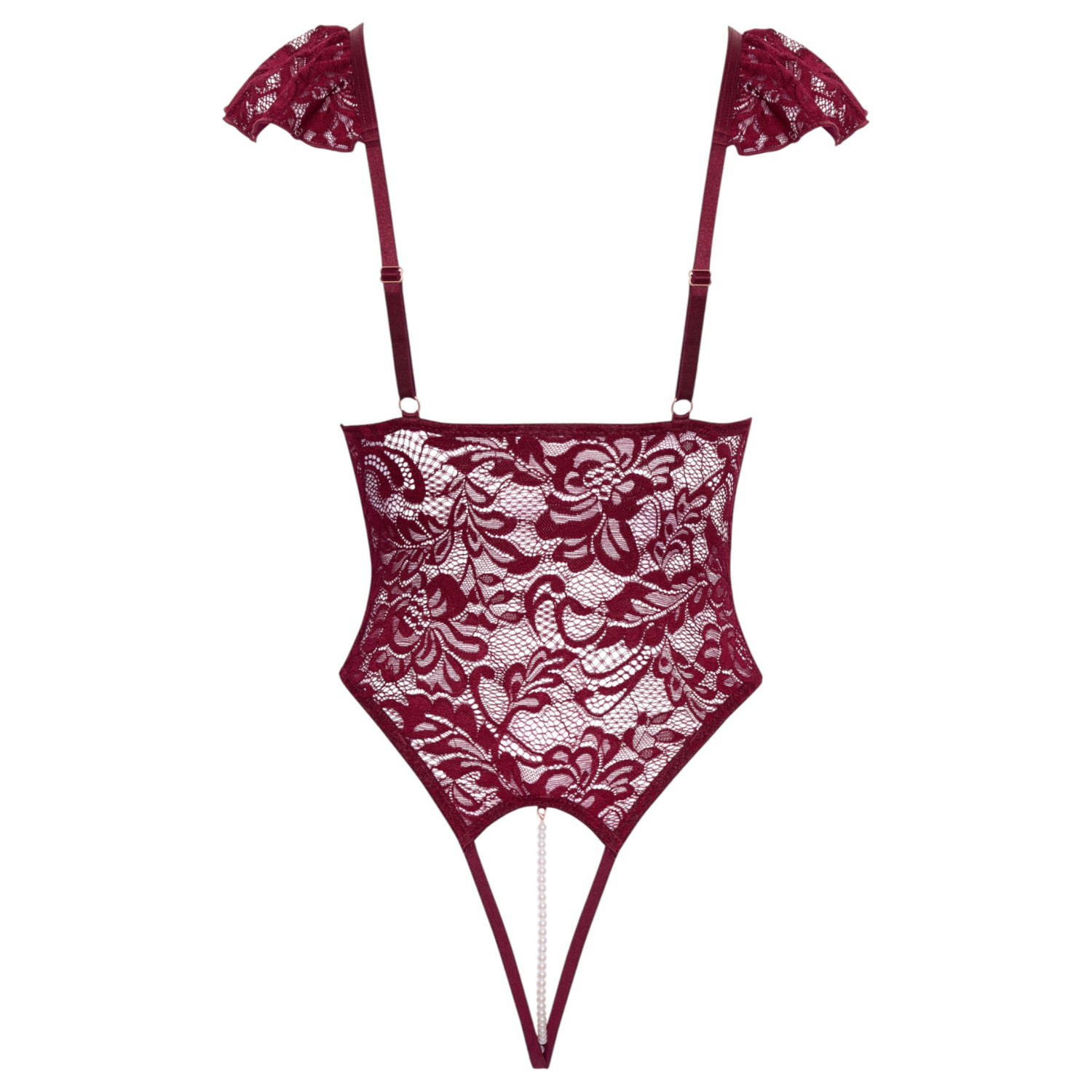 Este body no solo proporciona una apariencia seductora, sino que también ofrece una experiencia única en momentos íntimos. El encaje suave y delicado, el sensual juego de cadenas de perlas y el diseño abierto contribuyen a una prenda que es especialmente erótica y, al mismo tiempo, cómoda de llevar. Esta lencería es la garantía de que elevará la temperatura.