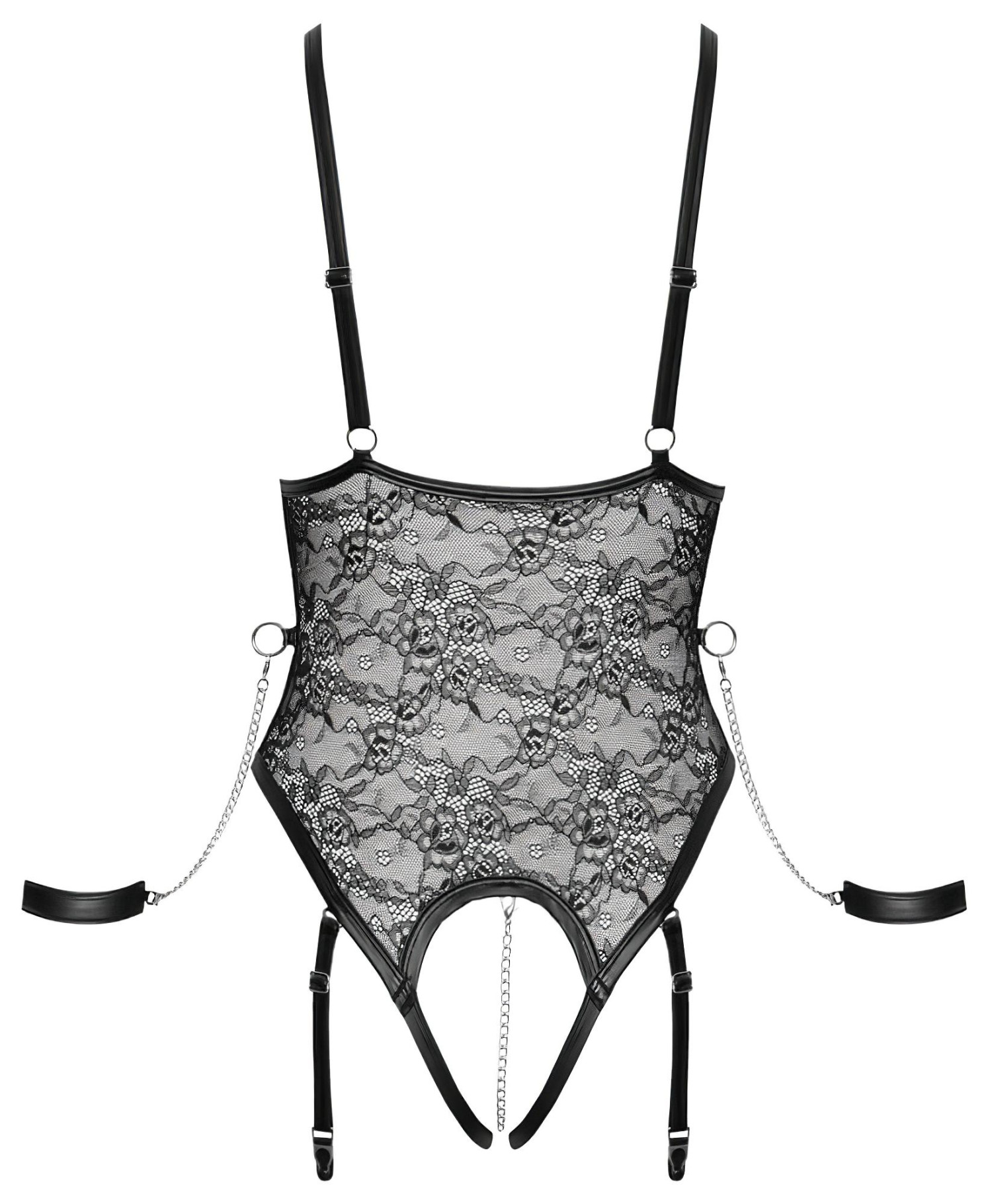 Cottelli Bondage - body abierto con esposas (negro) - L