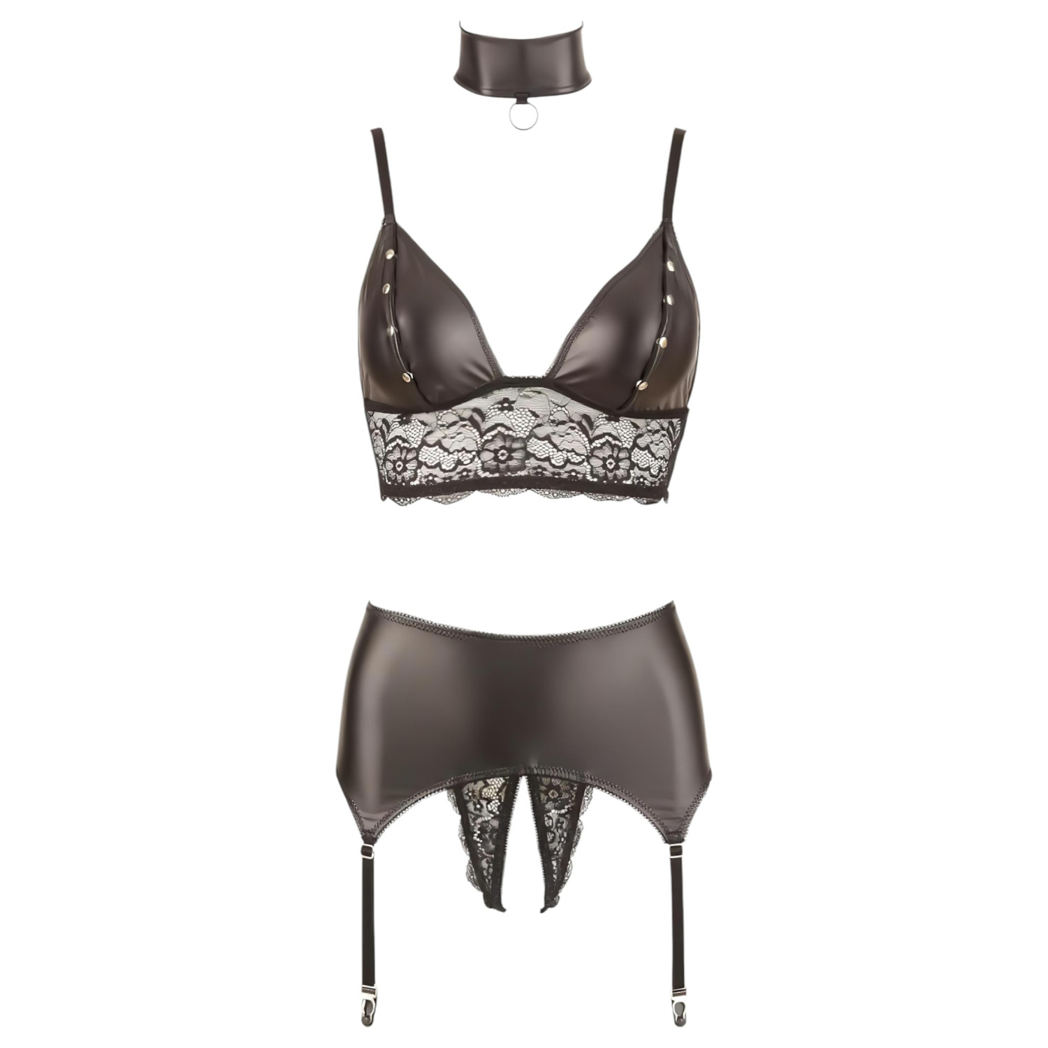 Cottelli Bondage - conjunto lencería brillante y encaje (4 piezas) - XL
