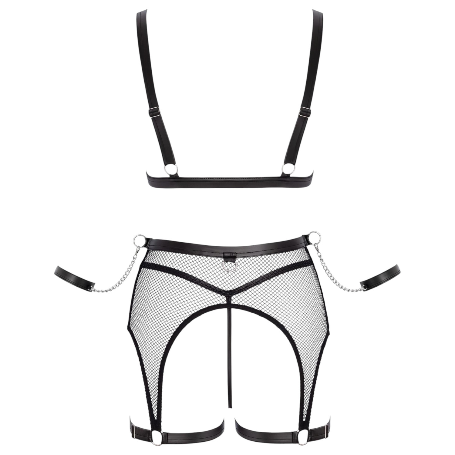 ¡Libera tu pasión con el set de lencería erótica Cottelli Bondage! Todo en uno: red suave, detalles mates y esposas.