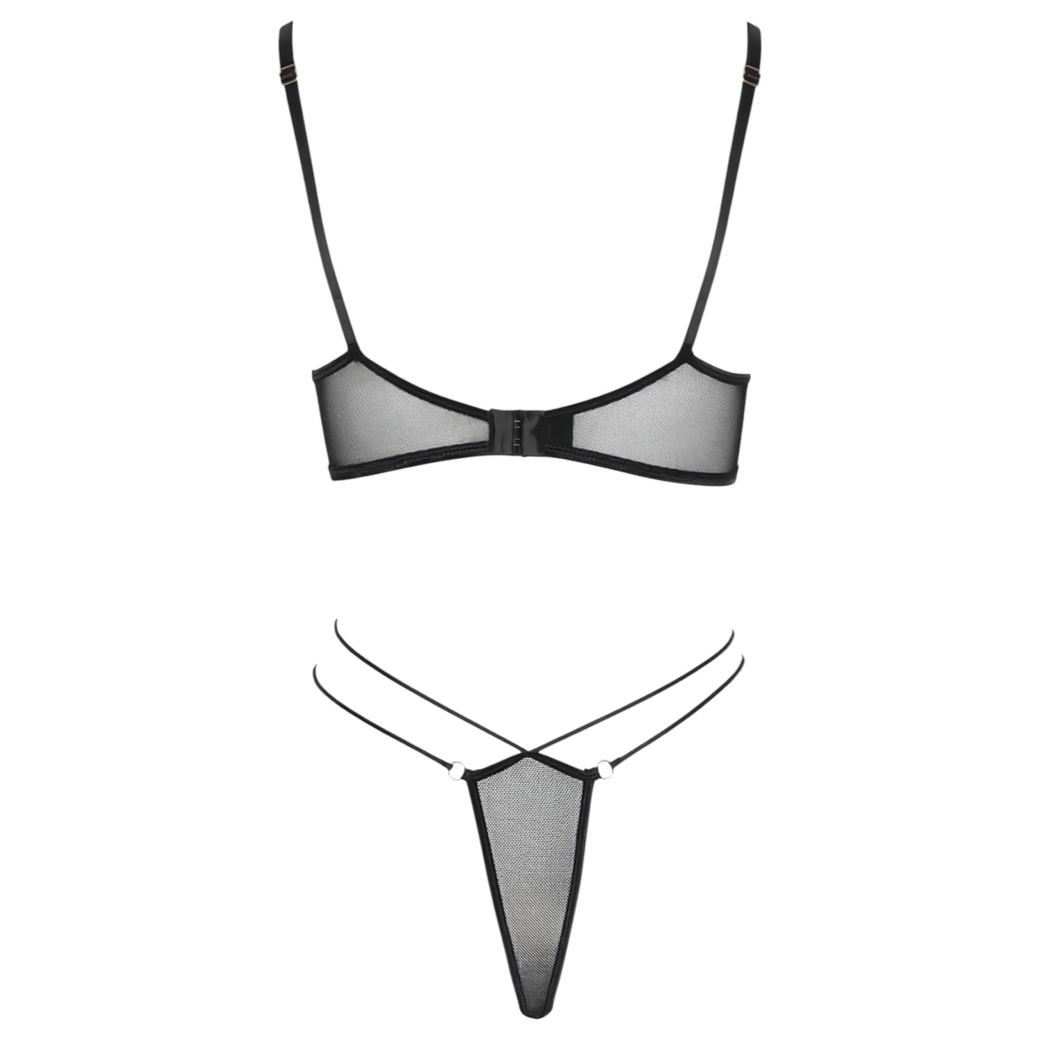 Precioso conjunto de sujetador decorado con encaje, con aros, que gracias a su tejido suave y semitransparente invita a las caricias y al placer.