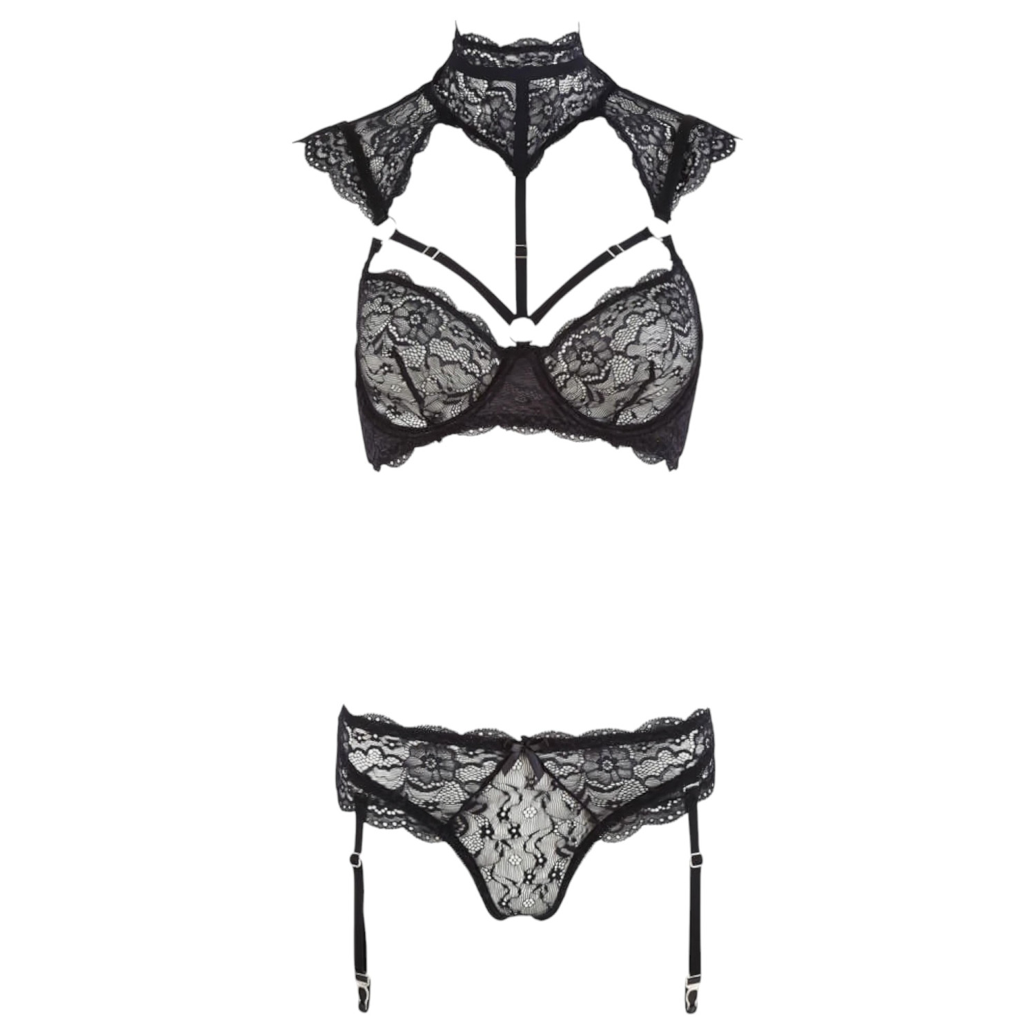 Cottelli - conjunto de encaje con cuello (negro) - 75C/S