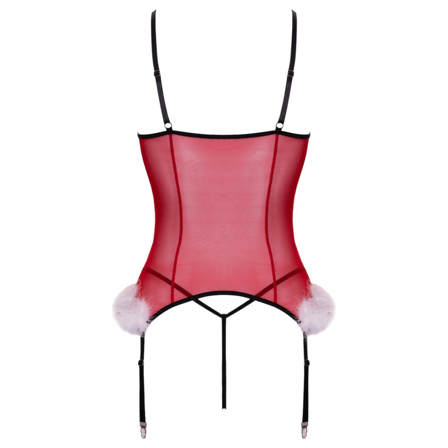 Cottelli - conjunto de lencería navideña con medias, con adornos negros y plumas blancas para una auténtica seducción festiva que irradia elegancia y sensualidad.