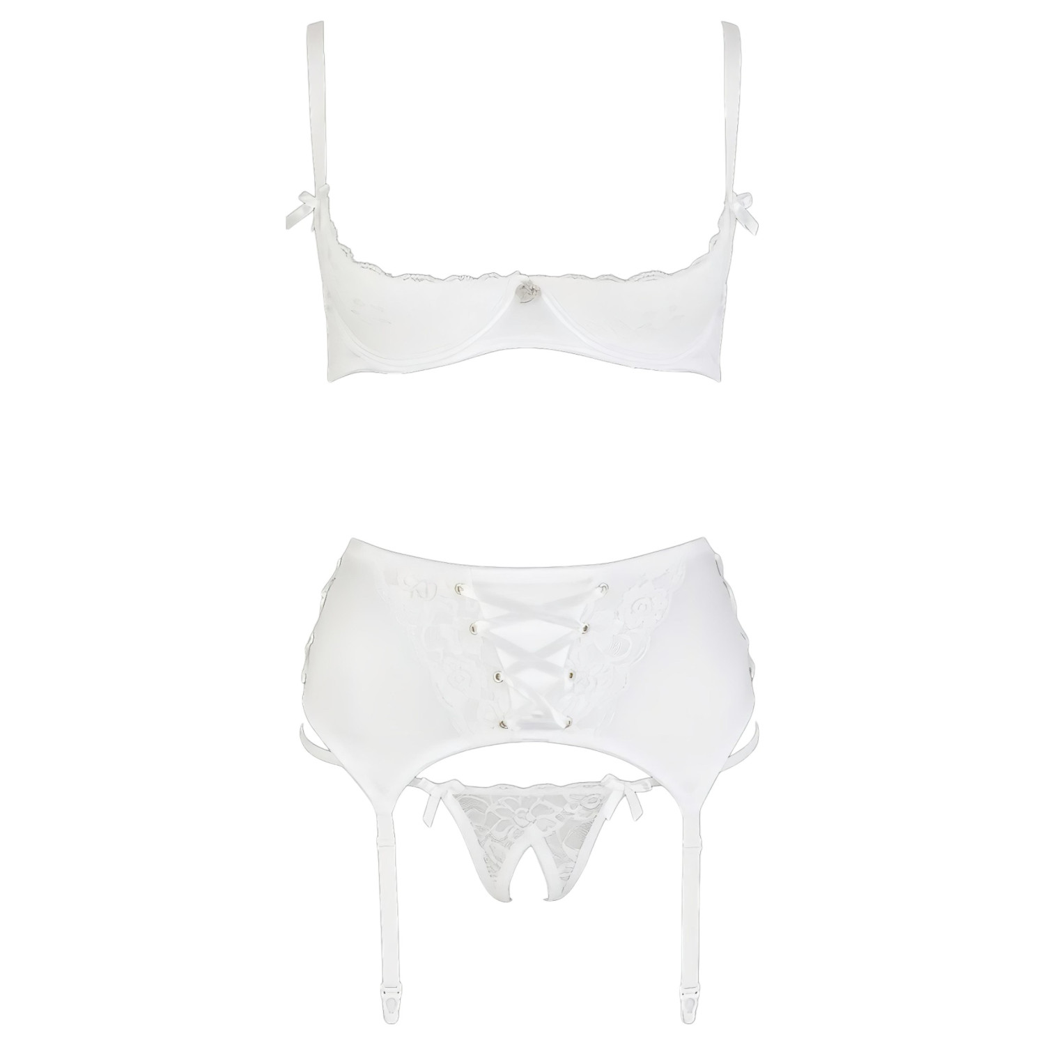Cottelli - conjunto blanco de encaje con corsé y realzador de busto