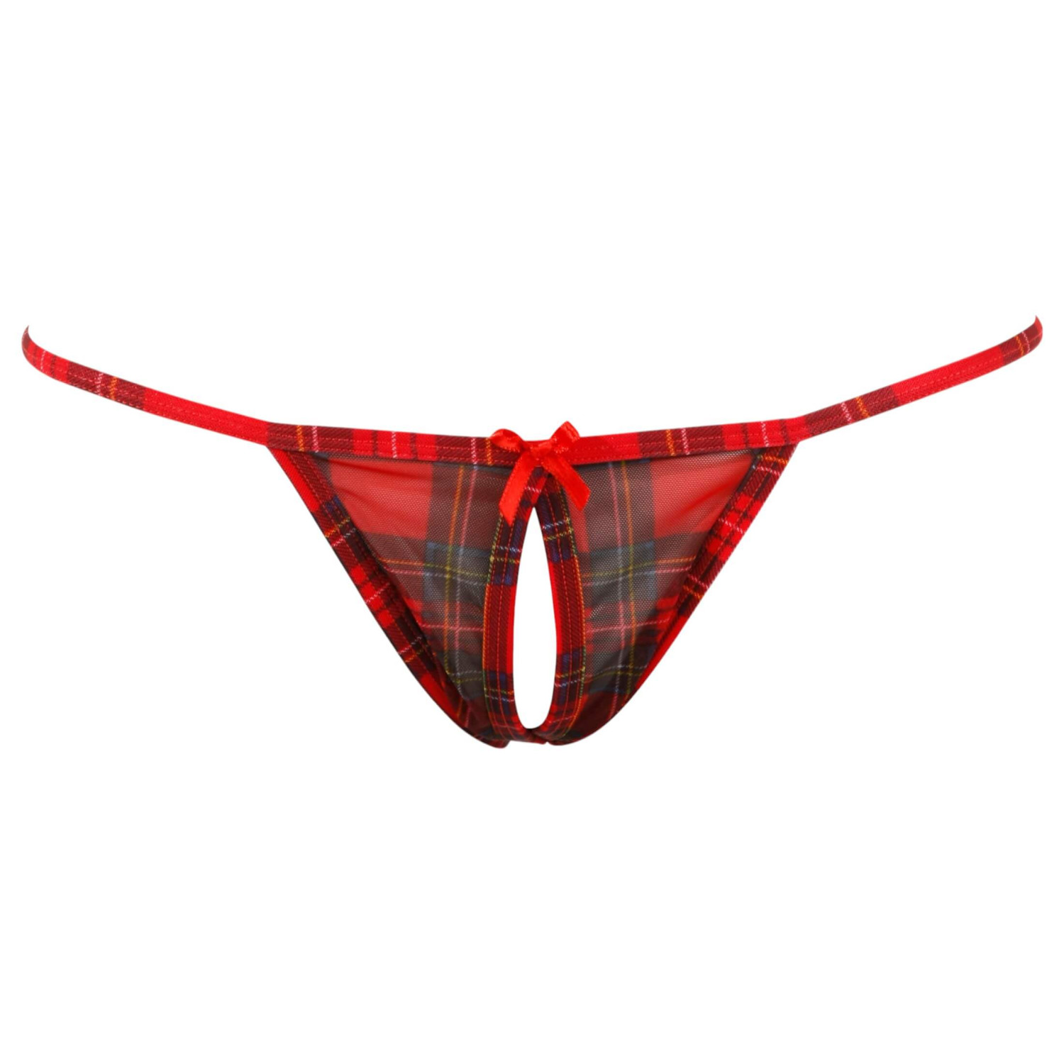 • Diseño llamativo: El estampado de rayas rojas y el encaje blanco transmiten elegancia y encanto, mientras que la tanga abierta aporta ese toque picante y sexy.