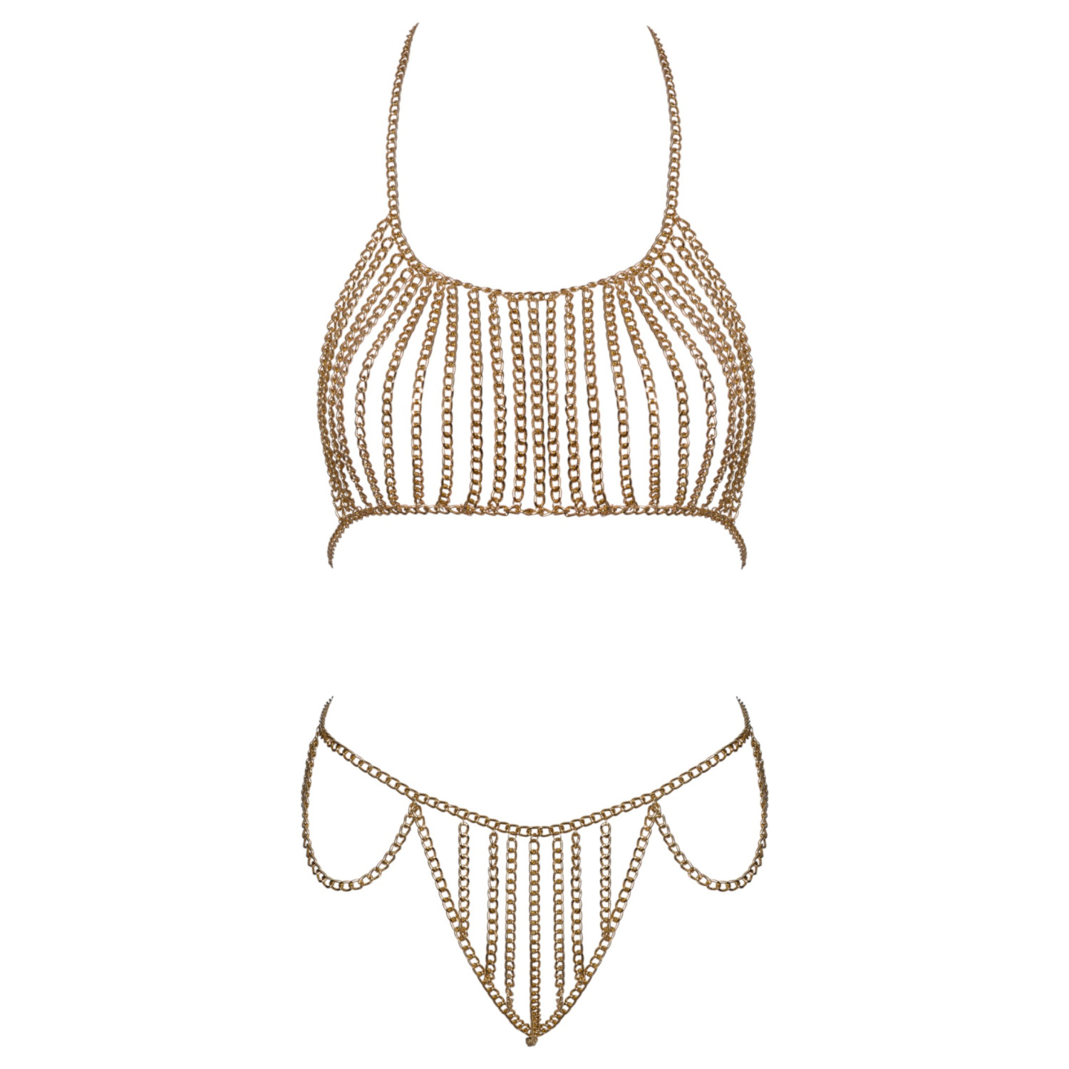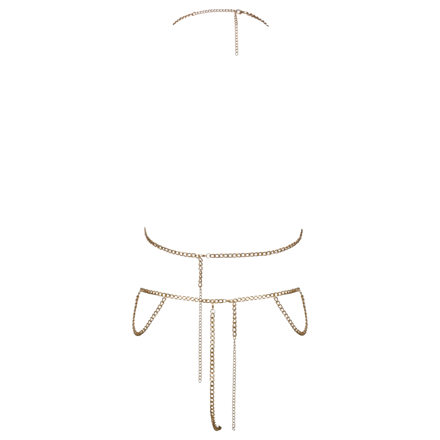 El Cottelli – accesorio de cadena (oro) es un bikini de cadenas dorado de lujo, con un efecto erótico, que cuenta con un tirante en el cuello tipo halter, cadenas traseras ajustables y una cadena íntima estimulante para lograr una aparición espectacular y elegante.