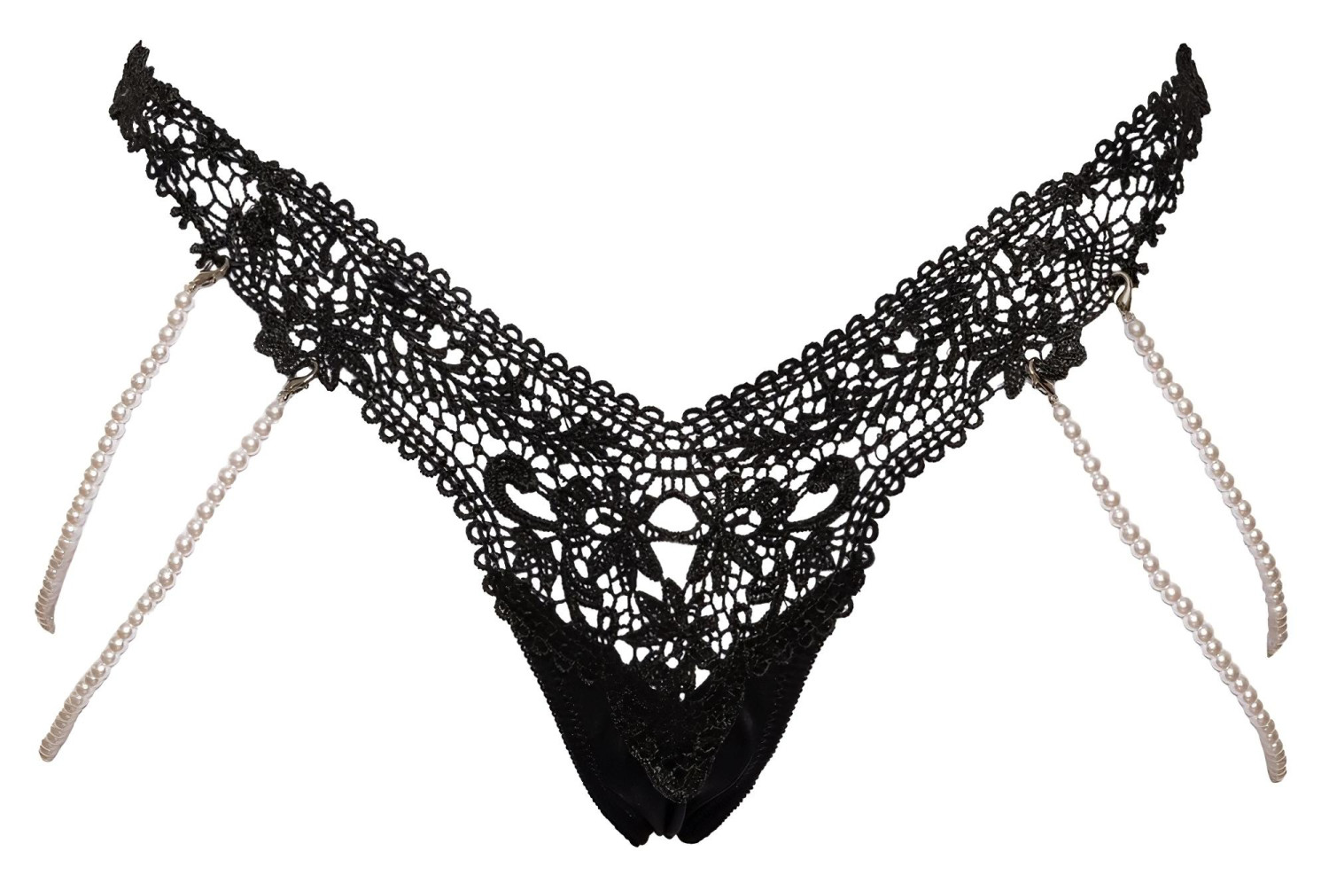 Tanga de encaje bordado de lujo con cadenas de perlas desmontables de Cottelli: ¡la tentación en otra dimensión!