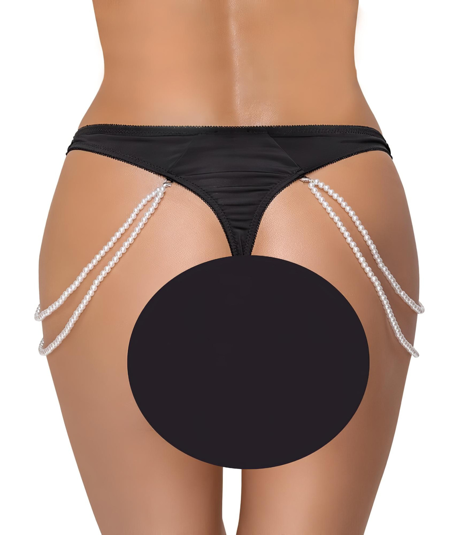 • 1 tanga de encaje bordado con cadenas de perlas desmontables