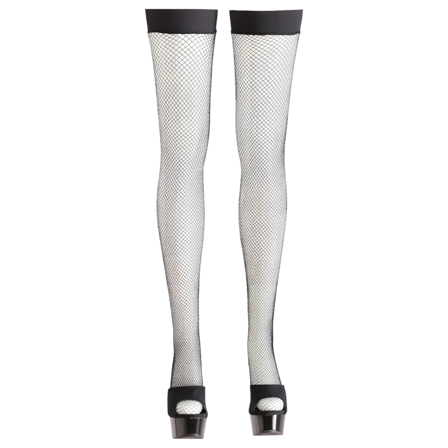 Medias de red de malla pequeña, con banda ancha en los muslos.