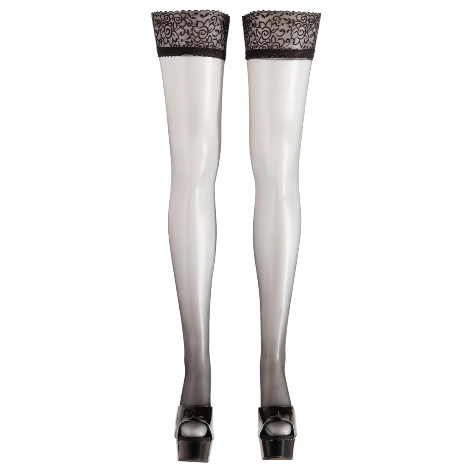 Medias transparentes hasta el muslo para mujer, con un ancho borde de encaje.
