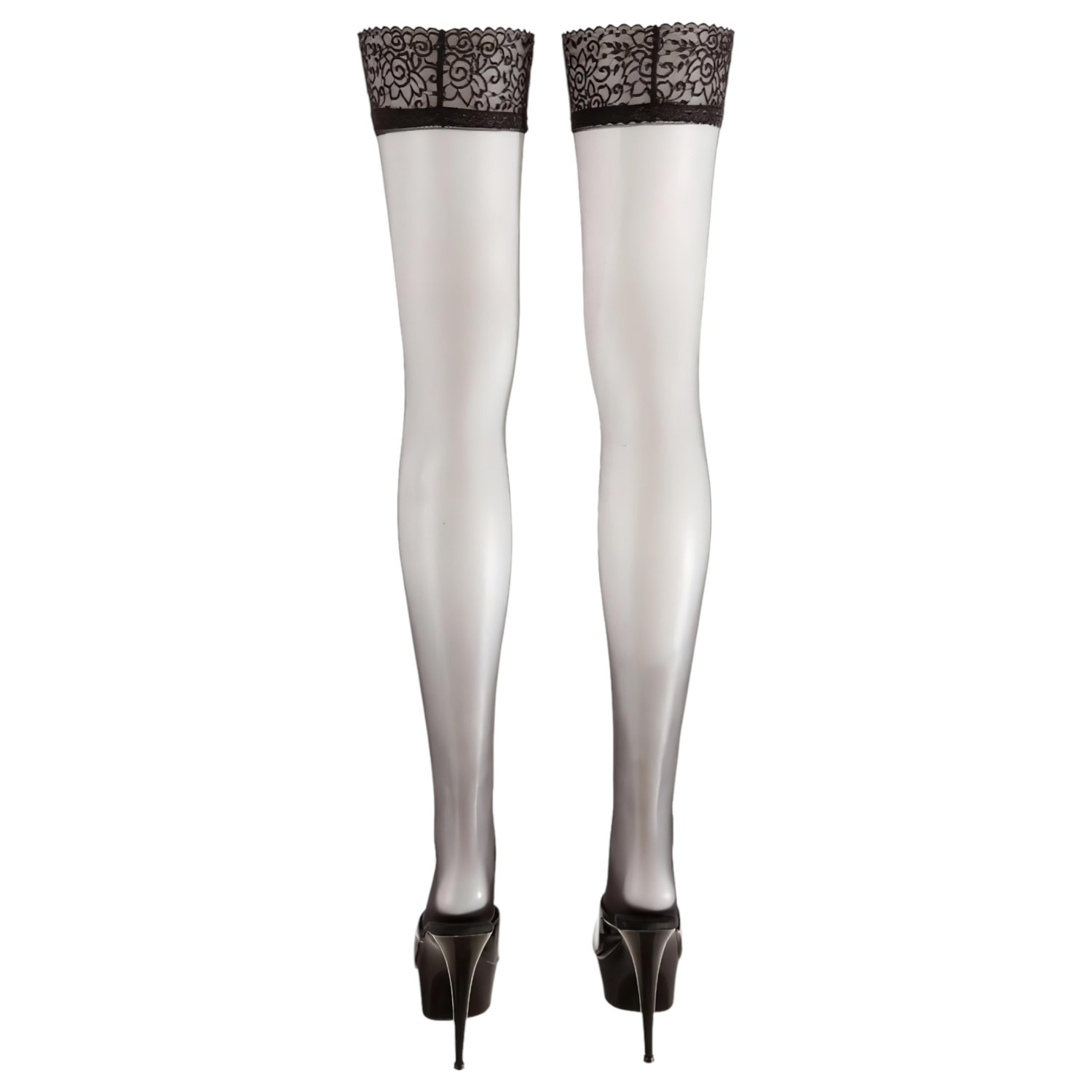 Medias transparentes hasta el muslo para mujer, con un ancho borde de encaje.