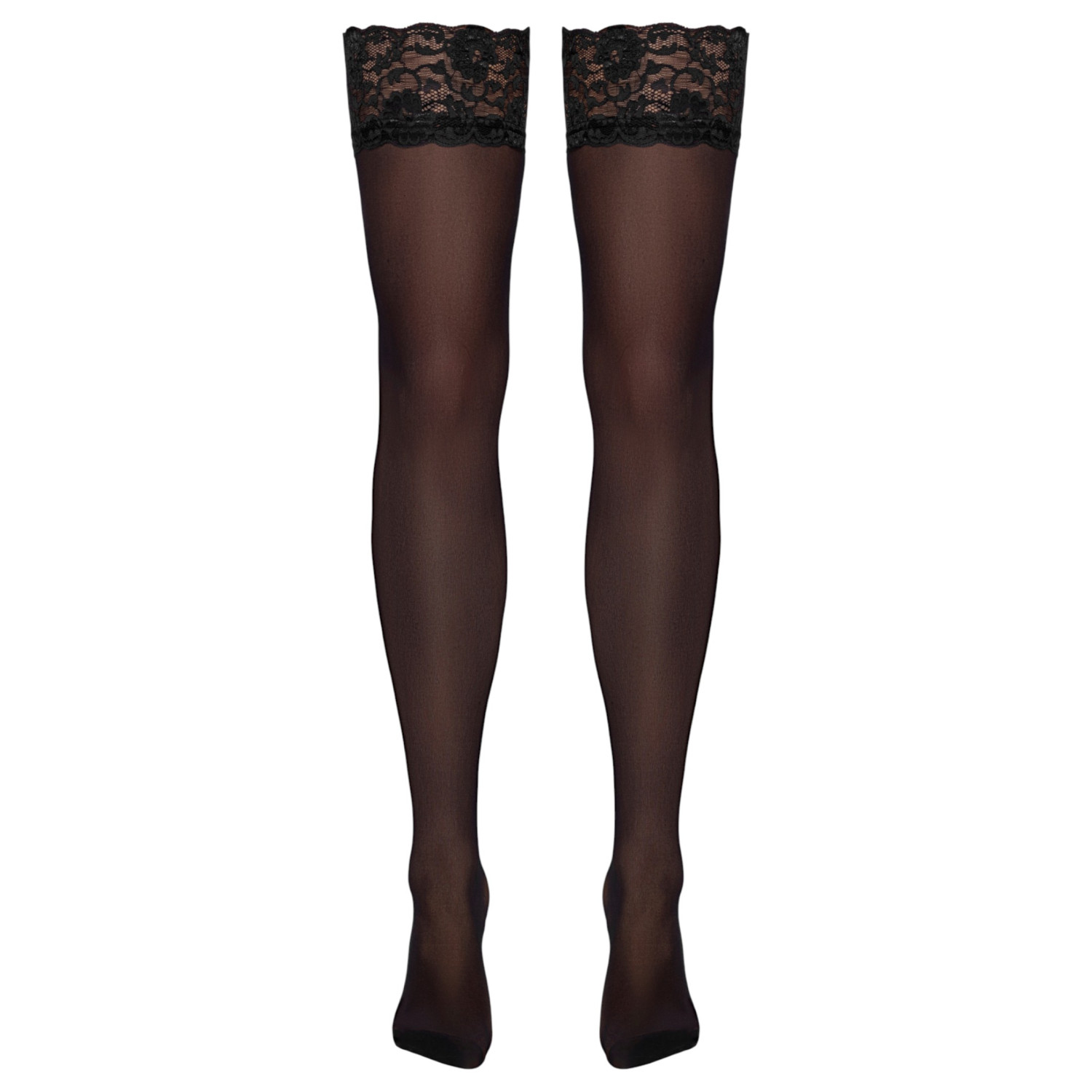Cottelli LEGWARE – elegante medias negras con tacto aterciopelado y parte superior de encaje.