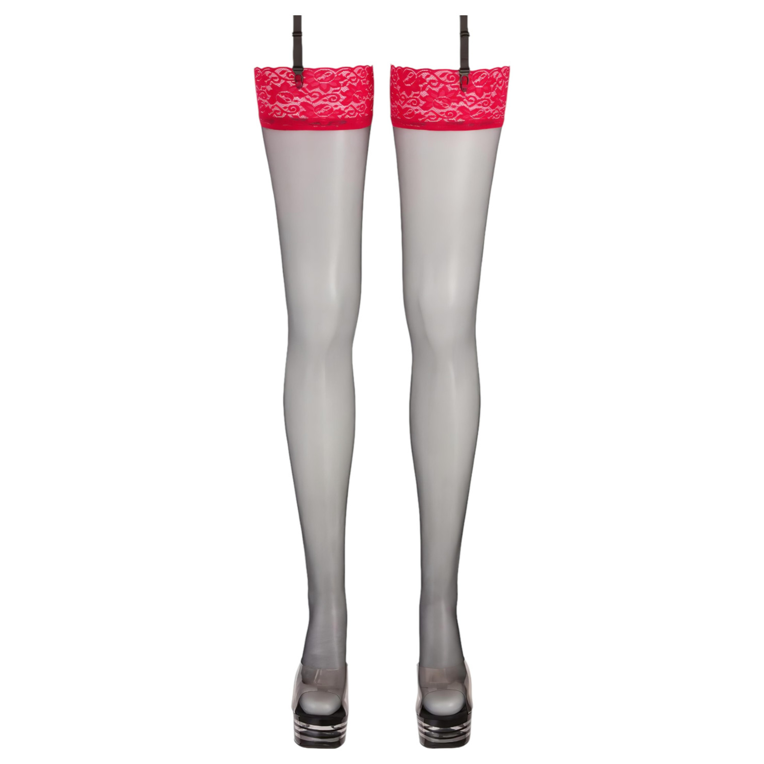 • 1 par de medias hasta el muslo con encaje rojo