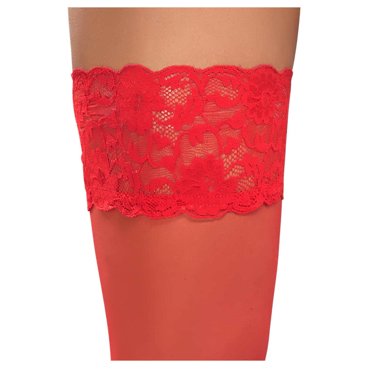 • 1 par de medias rojas de liga, con encaje de 9 cm y banda de silicona