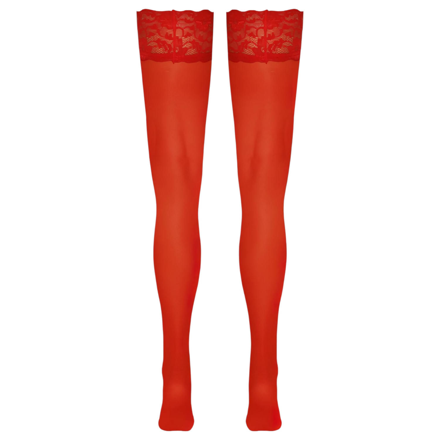 • 1 par de medias rojas de liga, con encaje de 9 cm y banda de silicona