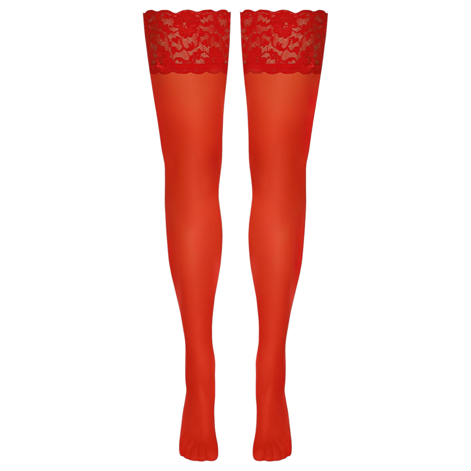 • 1 par de medias rojas de liga, con encaje de 9 cm y banda de silicona
