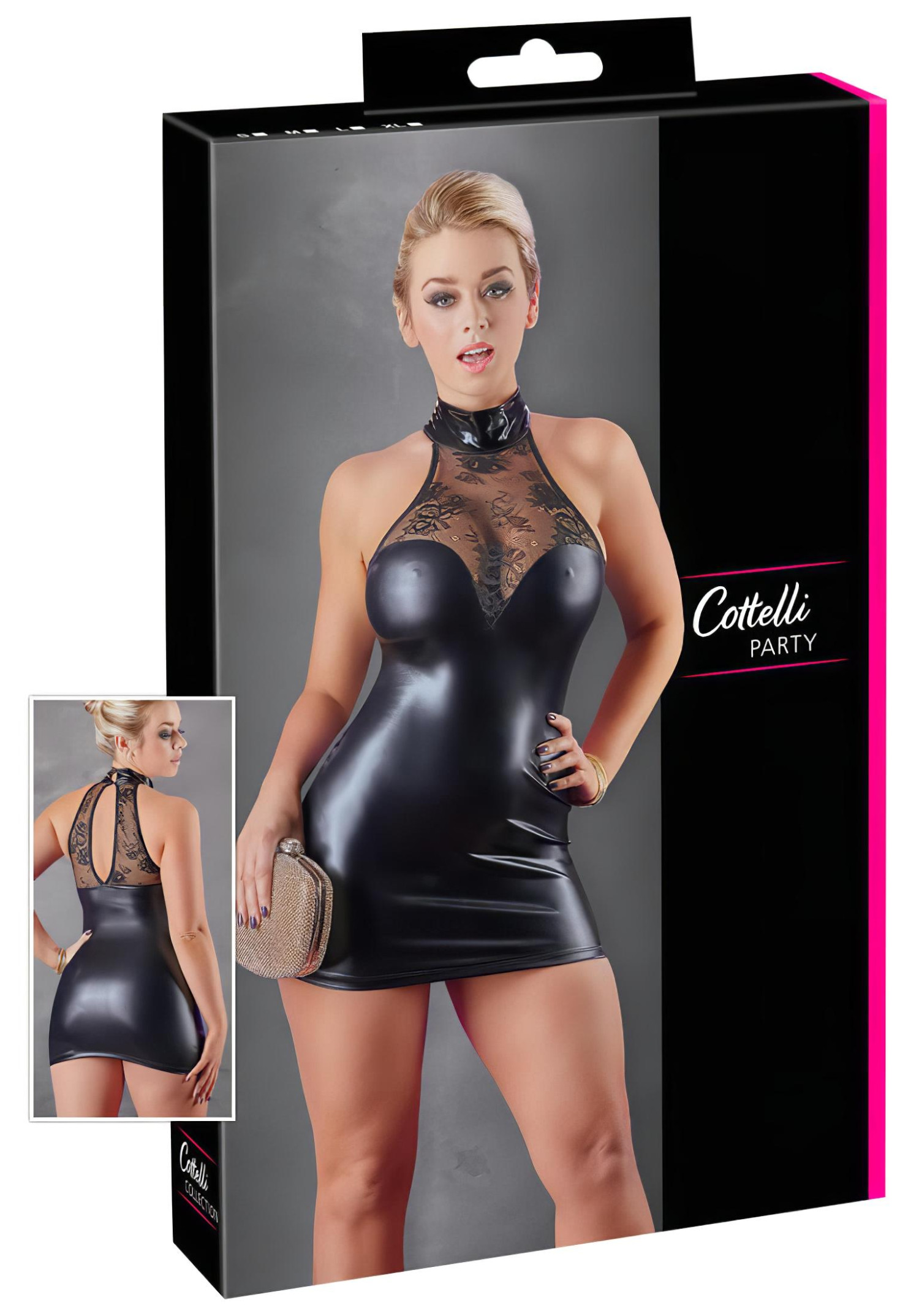 Cottelli - minivestido brillante con encaje y cuello halter (negro) - M