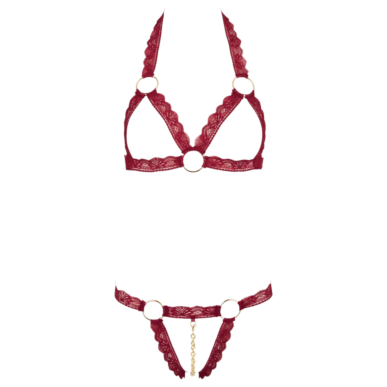 Reseñas Cottelli - Conjunto de sujetador abierto con anillos metálicos (rojo) - M/L