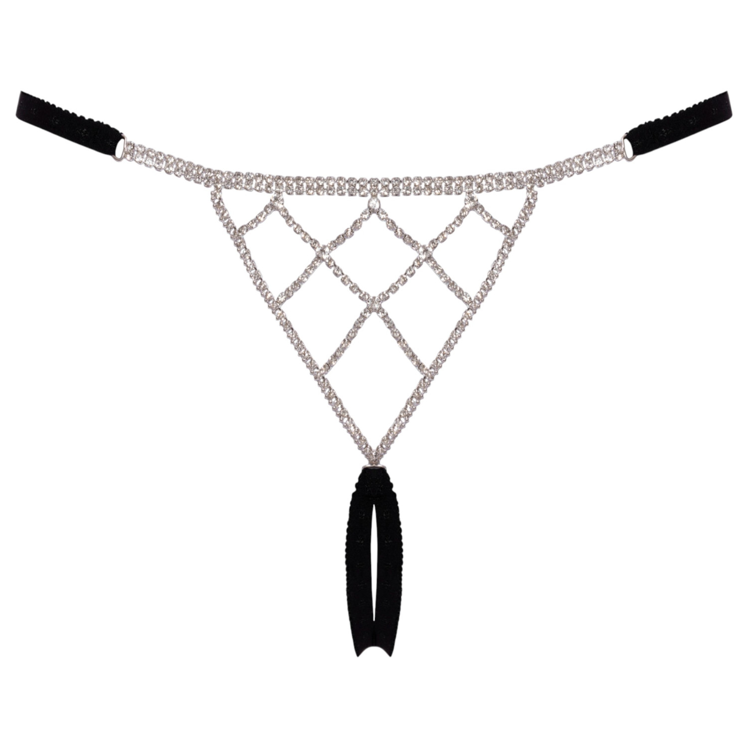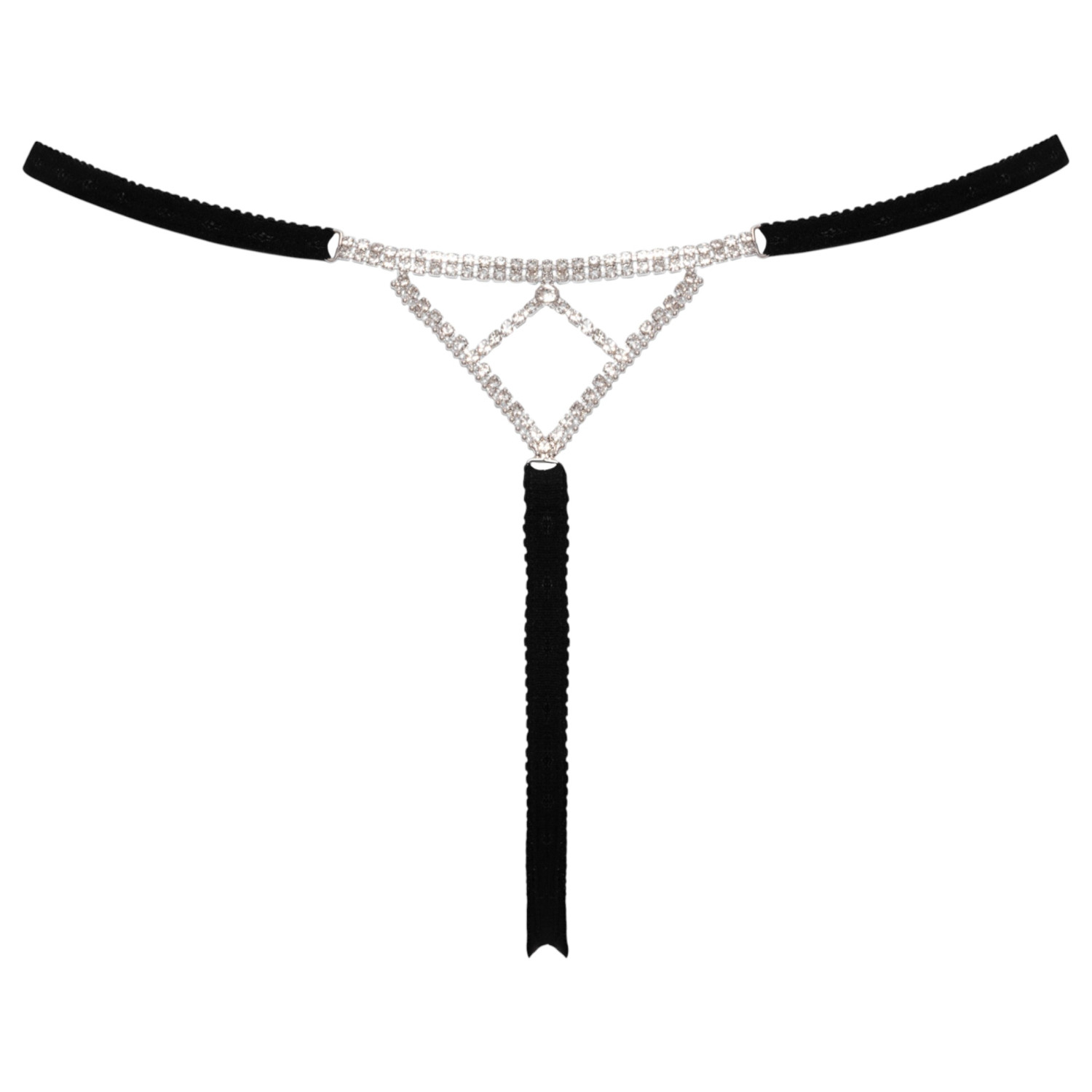 Cottelli LINGERIE – tanga negra lujosa con brillantes de strass y abertura (S–L)