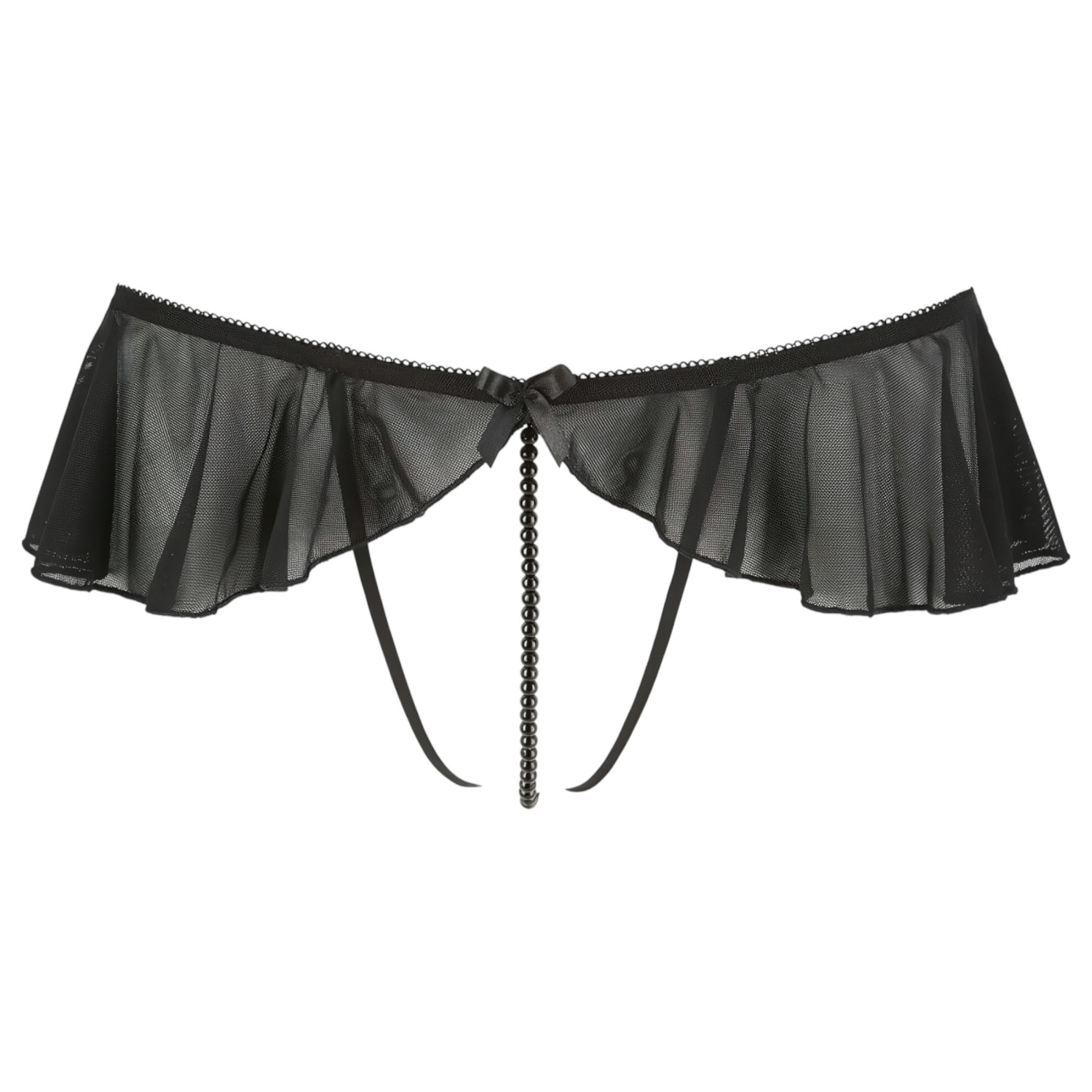 Cottelli - tanga negro con perlas y volantes abiertos - L