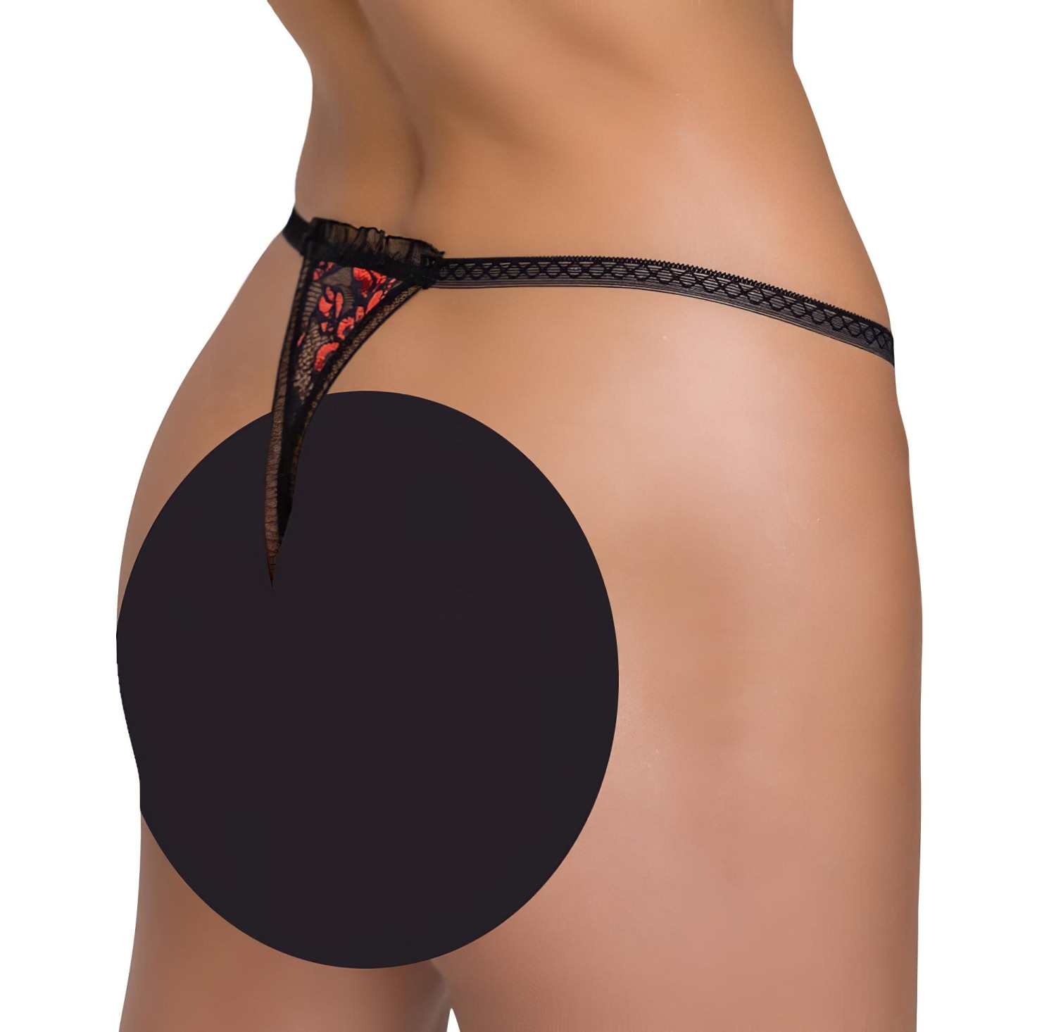 ¡Descubre una nueva dimensión de sensualidad con esta tanga de encaje finamente translúcido, adornada con detalles brillantes y delicados bordados de rosas con un toque sedoso!